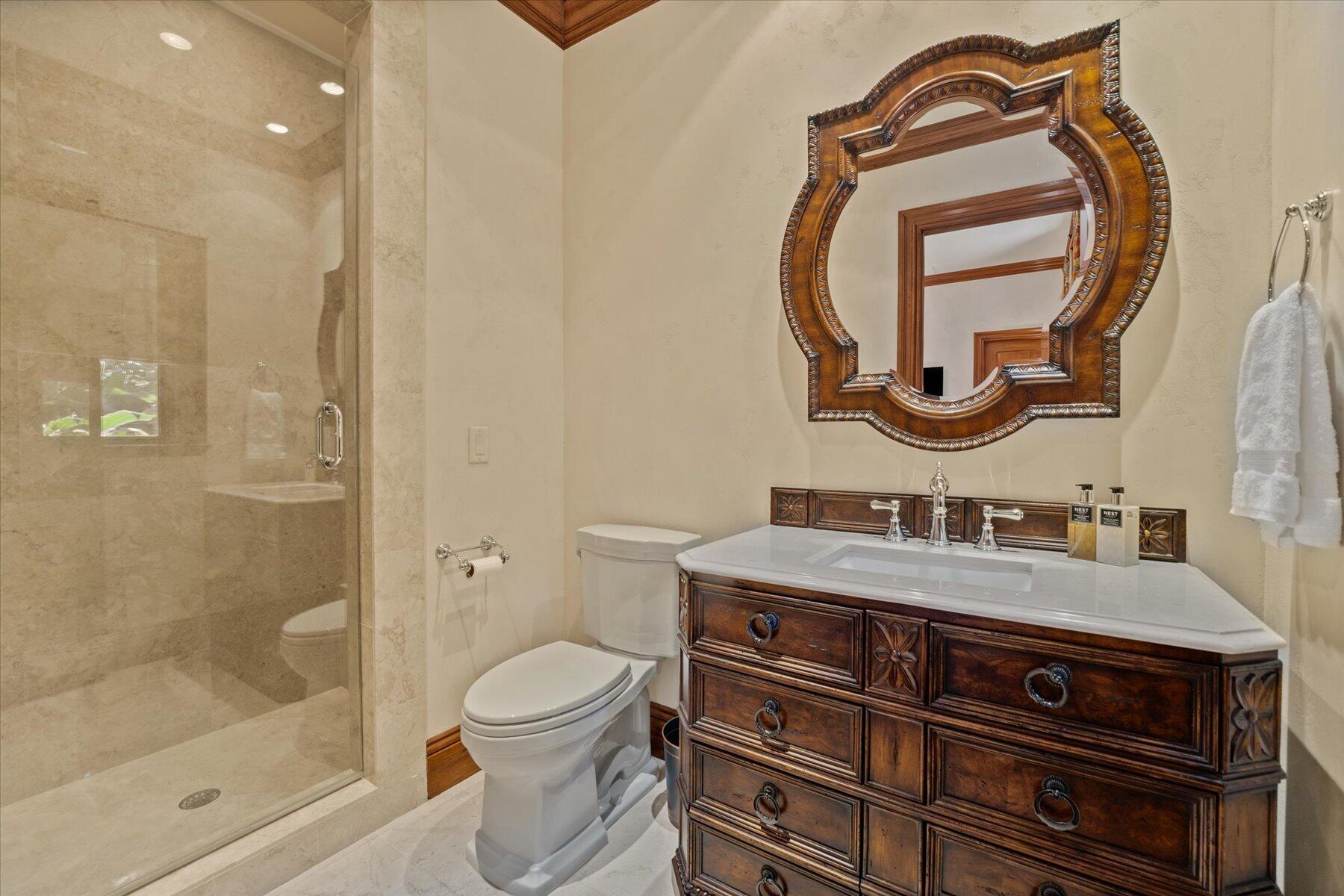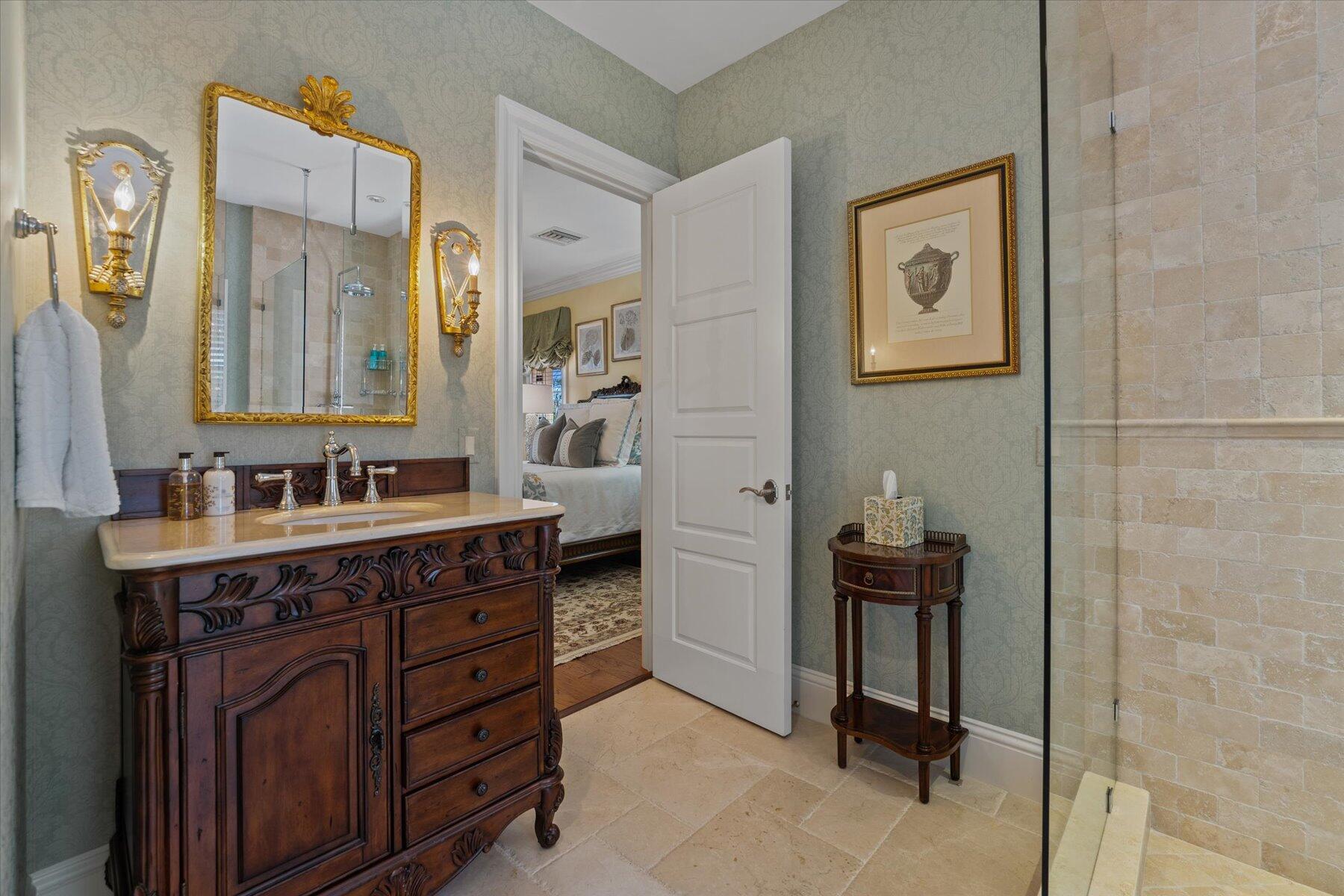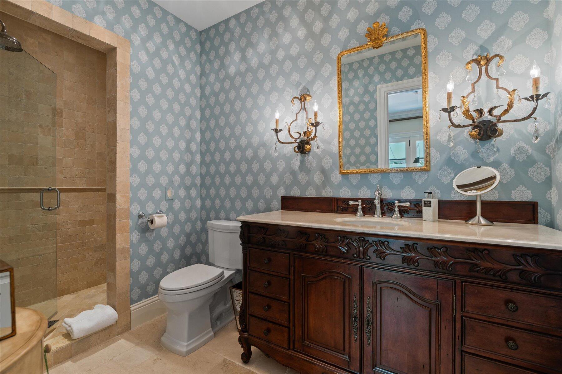Located on one of the most ultra prime, sought after tree-lined streets, this level 5 totally renovated 5/6.1 is only second house from the ocean! Extraordinarily scaled, it boasts high ceilings, stunning finishes, easy flowing floor plan and the most magnificent gardens by Nievera-Williams. Its oversized outdoor loggia is an extension of the generous living areas, and an upper terrace adjoins the 3 second floor bedrooms. Designed for the Palm Beach lifestyle, this ''filled with character'' treasure includes a striking Mizner-style beamed living room, a gourmet eat in kitchen, gracious entry, elevator, limestone, marble and wood floors and more. It is truly a move in ready home, you can enjoy immediately.