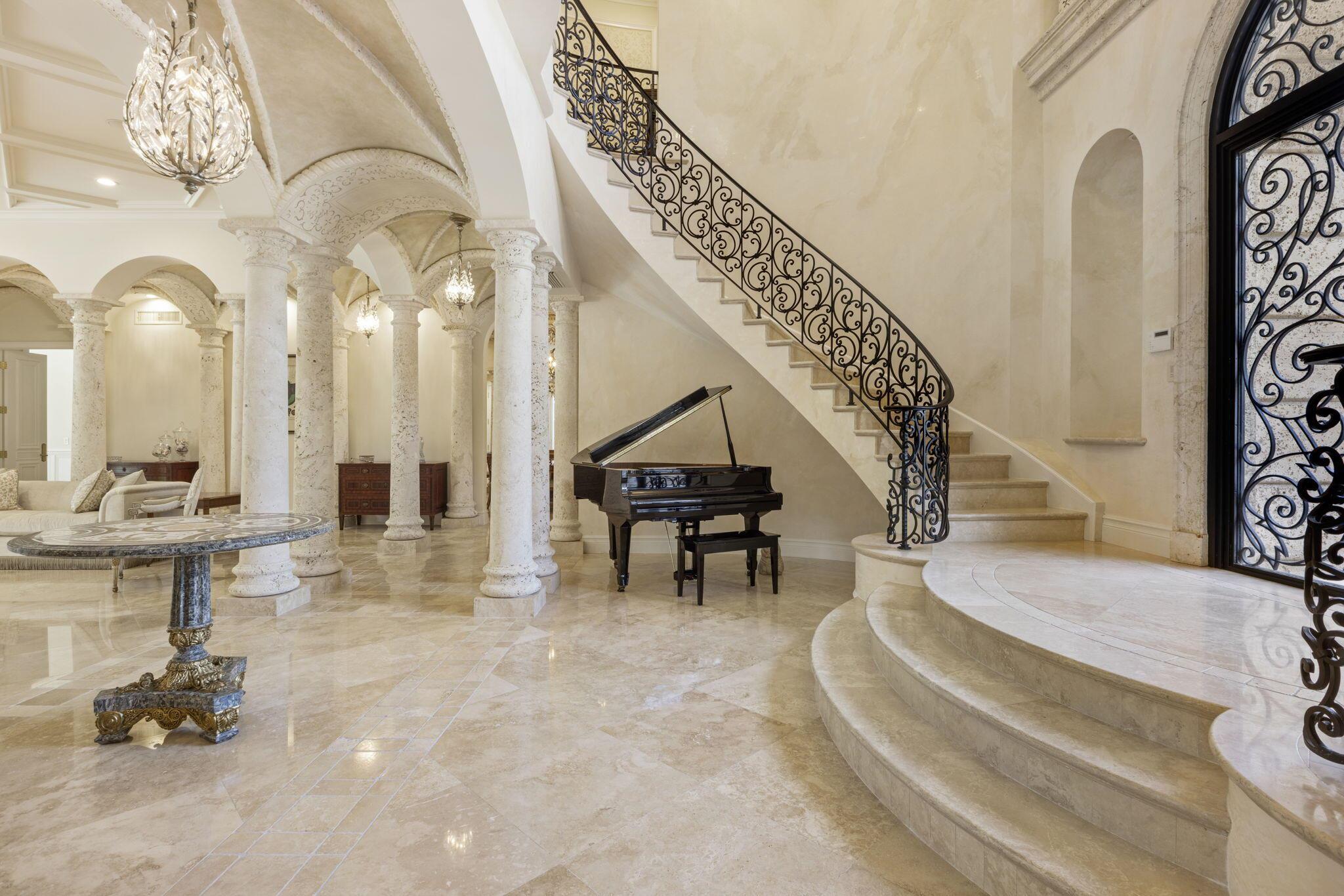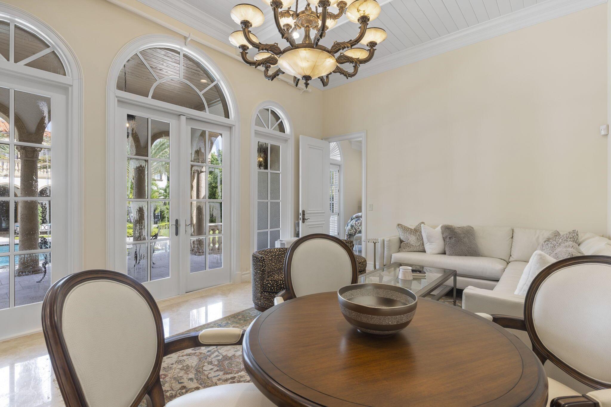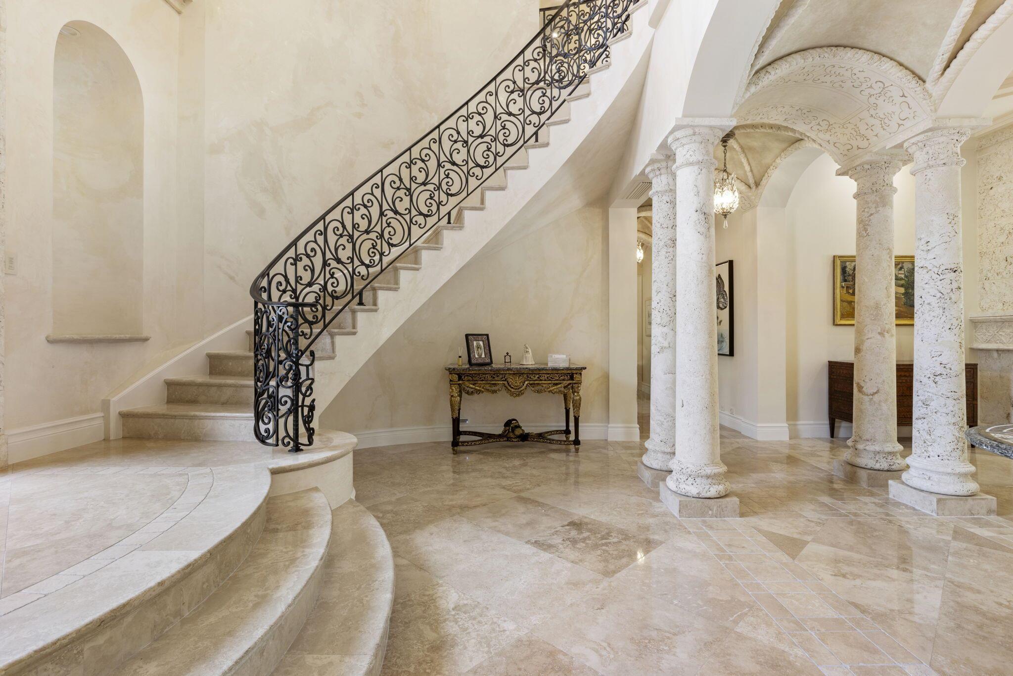 Discover the splendor of this updated Mediterranean home with a high elevation in the Estate Section, boasting a prime location near the ocean with deeded beach access. Set on a sprawling high elevation 3/4-acre plot, this magnificent residence offers an impressive eight bedrooms/nine bathrooms including separate guest house. Indulge in the luxury of a private home gym, wood-paneled library/office, and a primary bedroom suite featuring separate bathrooms with custom cabinetry, spacious walk-in closets, and detailed ceilings throughout. Step onto the expansive balcony overlooking the manicured gardens and resort style pool/fountain. Perfect for entertaining, the home's modern floorplan showcases a remarkable, renovated chef's kitchen off of the family room and outdoor loggia area.