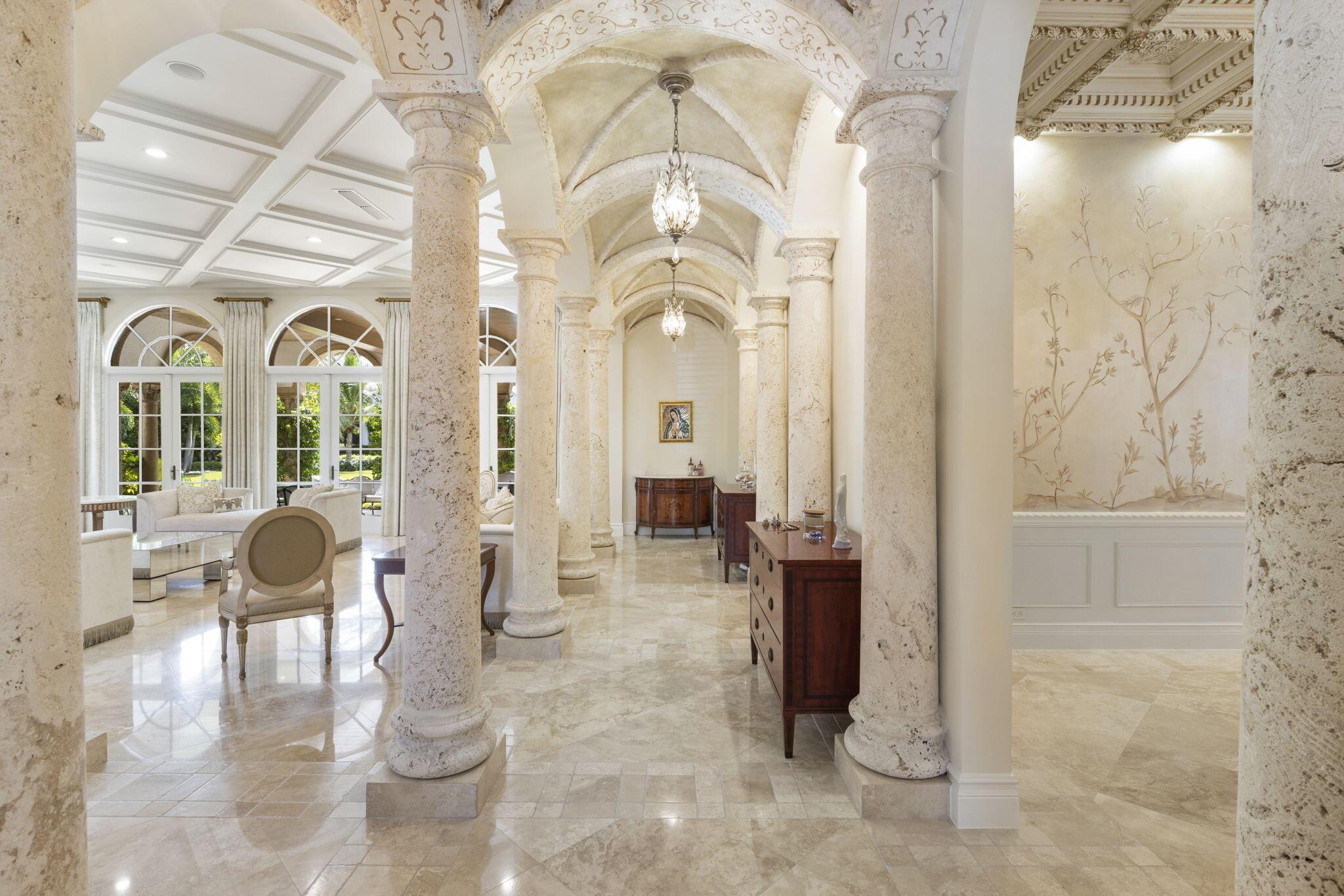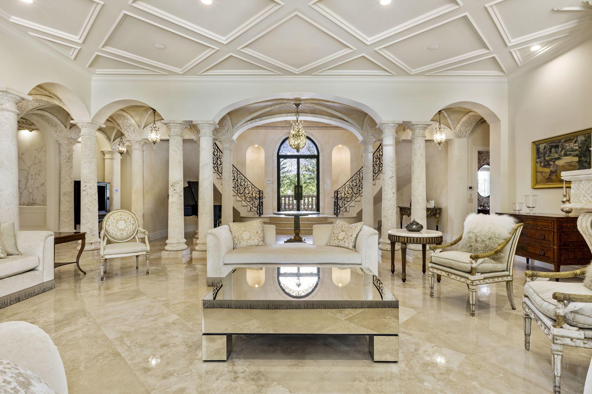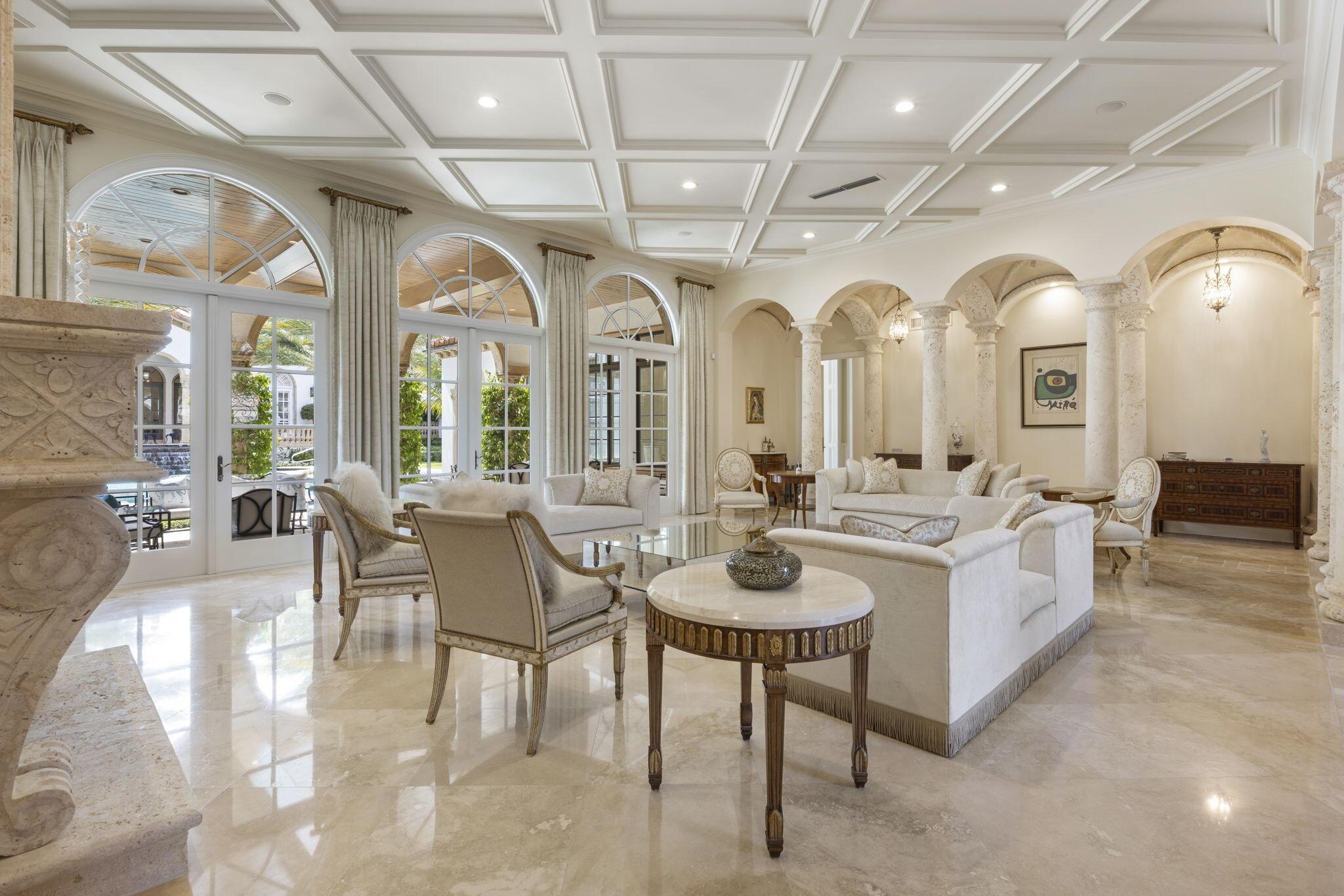 Discover the splendor of this updated Mediterranean home with a high elevation in the Estate Section, boasting a prime location near the ocean with deeded beach access. Set on a sprawling high elevation 3/4-acre plot, this magnificent residence offers an impressive eight bedrooms/nine bathrooms including separate guest house. Indulge in the luxury of a private home gym, wood-paneled library/office, and a primary bedroom suite featuring separate bathrooms with custom cabinetry, spacious walk-in closets, and detailed ceilings throughout. Step onto the expansive balcony overlooking the manicured gardens and resort style pool/fountain. Perfect for entertaining, the home's modern floorplan showcases a remarkable, renovated chef's kitchen off of the family room and outdoor loggia area.