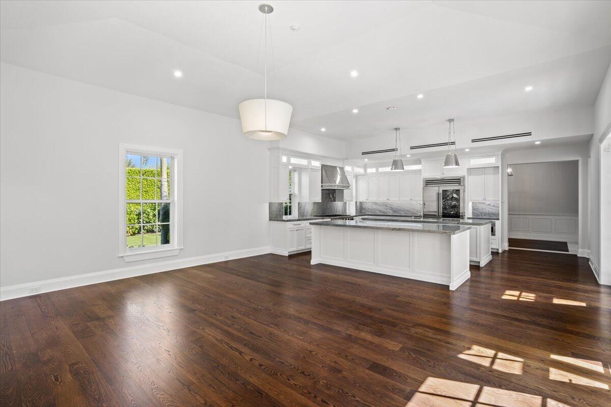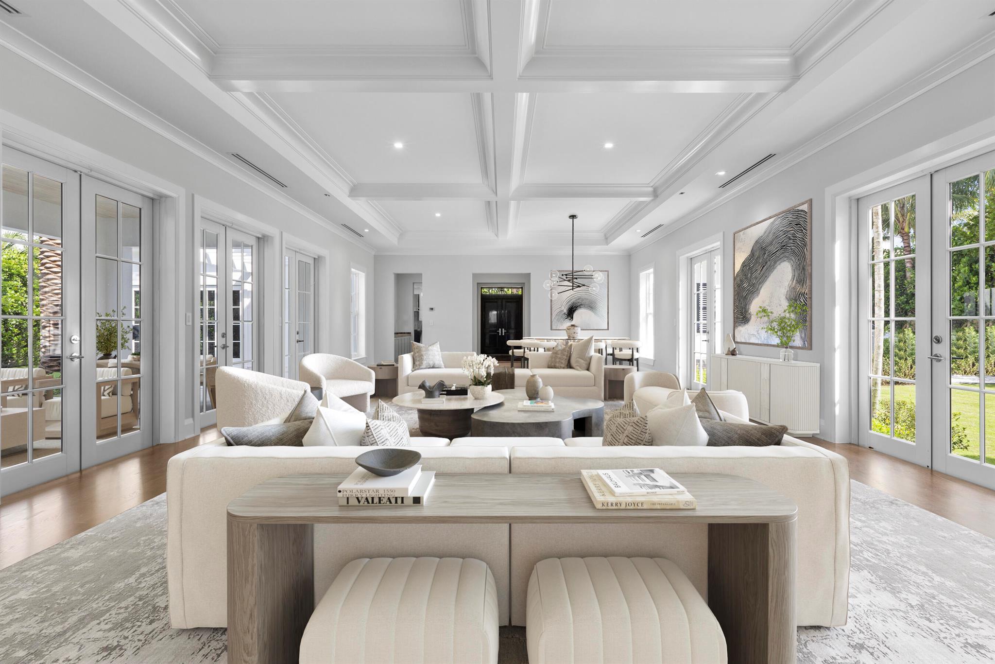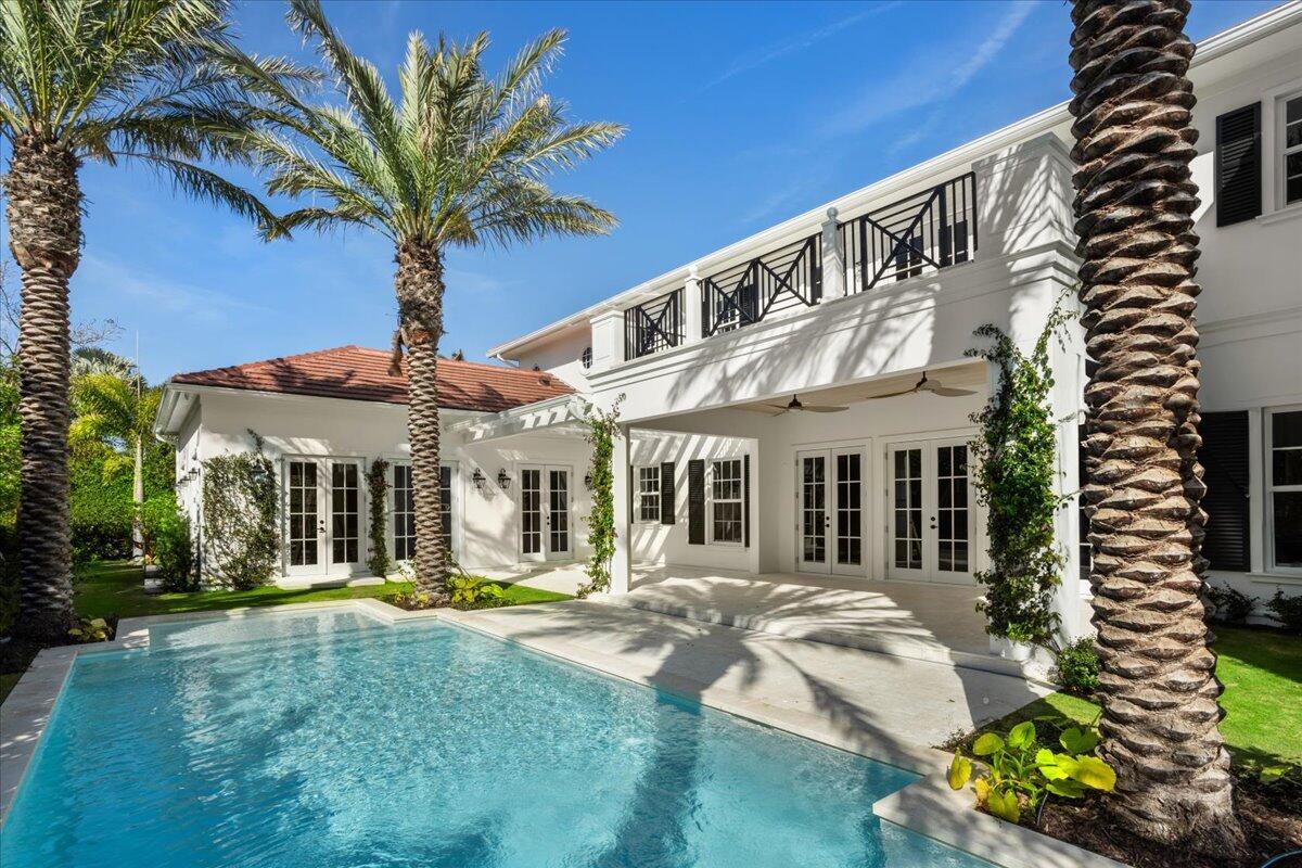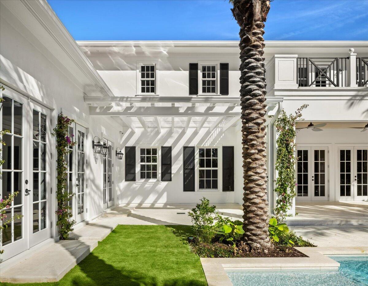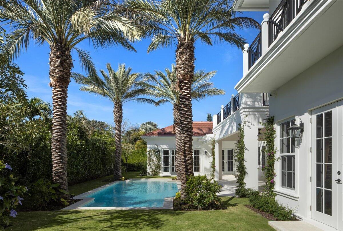 Just completed on an oversized lot, this five bedroom, 6.1 marble bath estate has ultra-high ceilings and spacious rooms throughout. A stately entry foyer, separate bar with 2 refrigerators, hardwood floors and recessed lighting throughout. Bright and light, every room has at least two walls of windows/doors. The primary suite has two luxurious bathrooms, large walk-in closets, and a generous private terrace. The kitchen has quality cabinetry and appliances and expands onto a spacious family room. The east side of the property has a wonderfully sized garden area, and the west aide has an outdoor loggia that is adjacent to the oversized pool/spa. Additionally, there is an elevator, storage, 2 laundry rooms, air-conditioned two car garage,