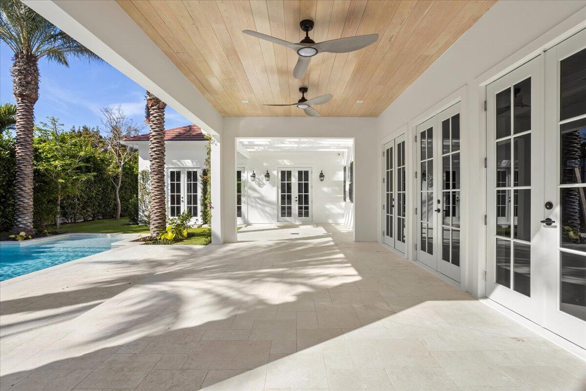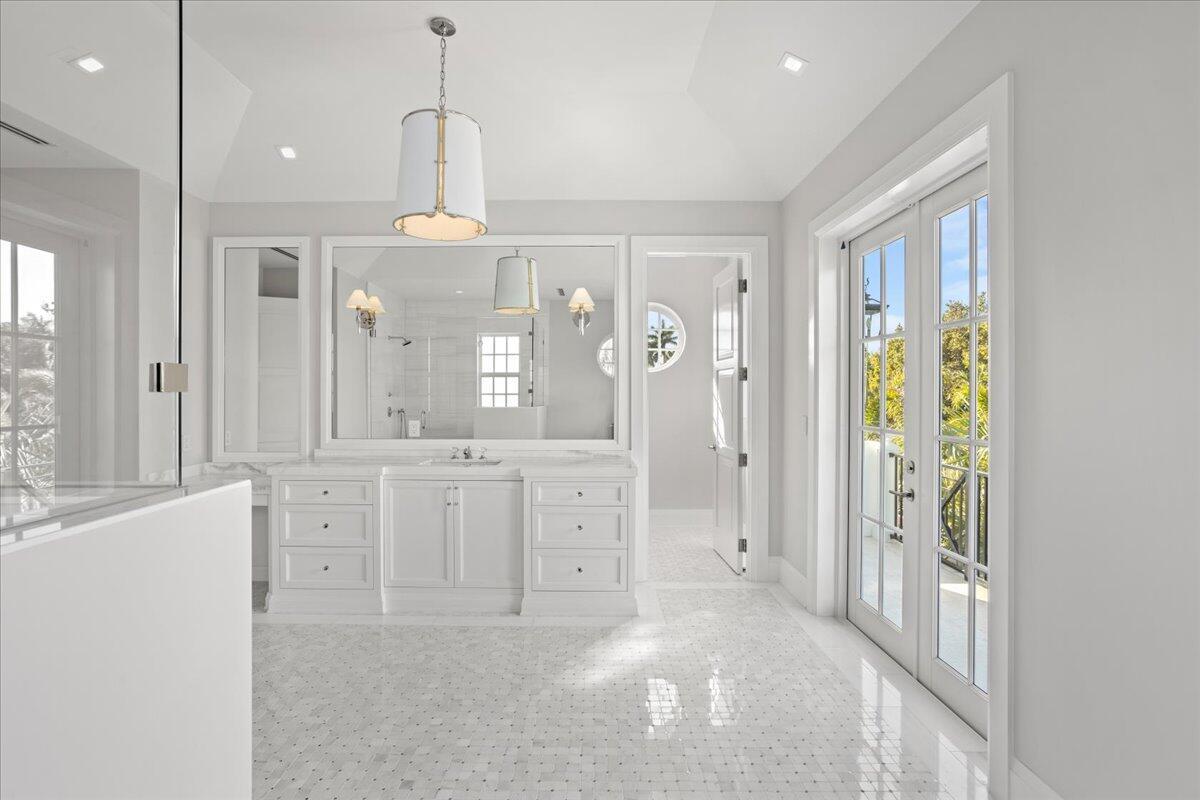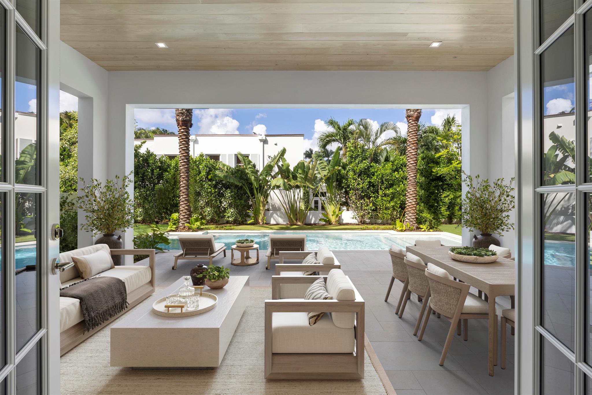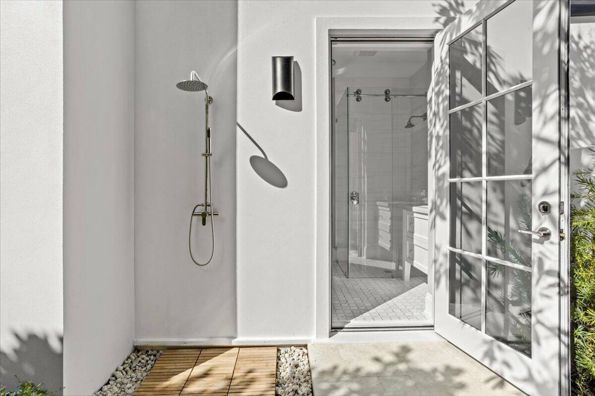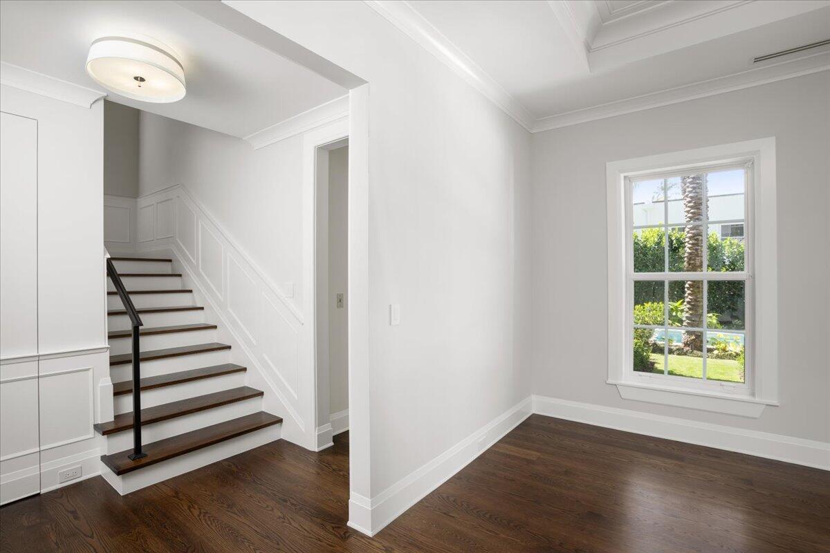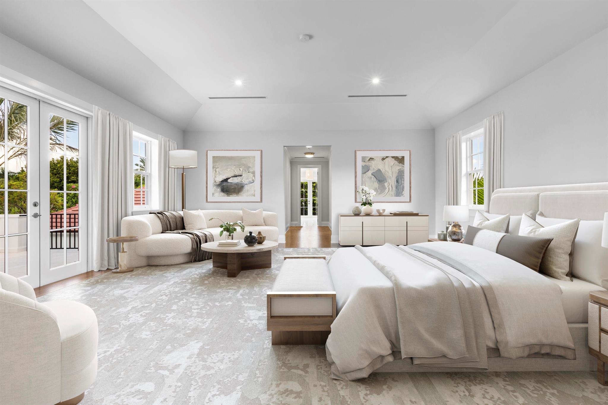Just completed on an oversized lot, this five bedroom, 6.1 marble bath estate has ultra-high ceilings and spacious rooms throughout. A stately entry foyer, separate bar with 2 refrigerators, hardwood floors and recessed lighting throughout. Bright and light, every room has at least two walls of windows/doors. The primary suite has two luxurious bathrooms, large walk-in closets, and a generous private terrace. The kitchen has quality cabinetry and appliances and expands onto a spacious family room. The east side of the property has a wonderfully sized garden area, and the west aide has an outdoor loggia that is adjacent to the oversized pool/spa. Additionally, there is an elevator, storage, 2 laundry rooms, air-conditioned two car garage,