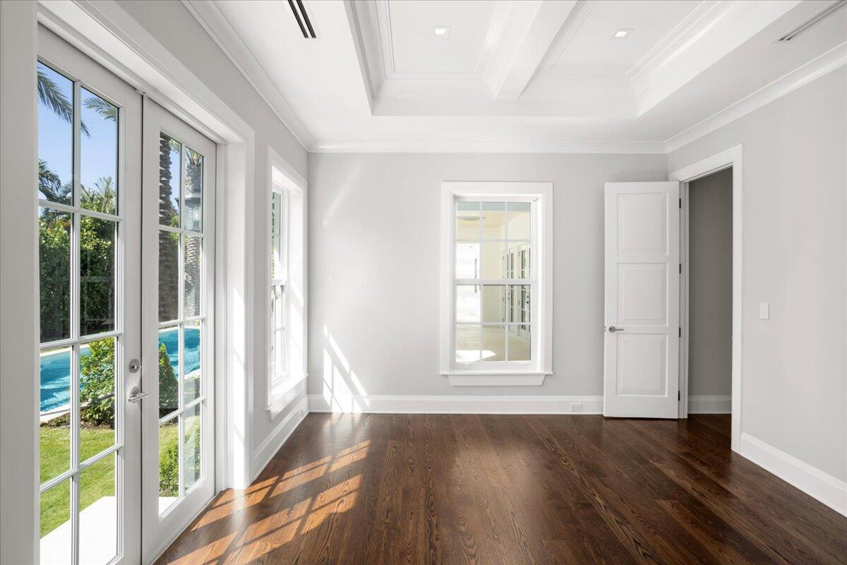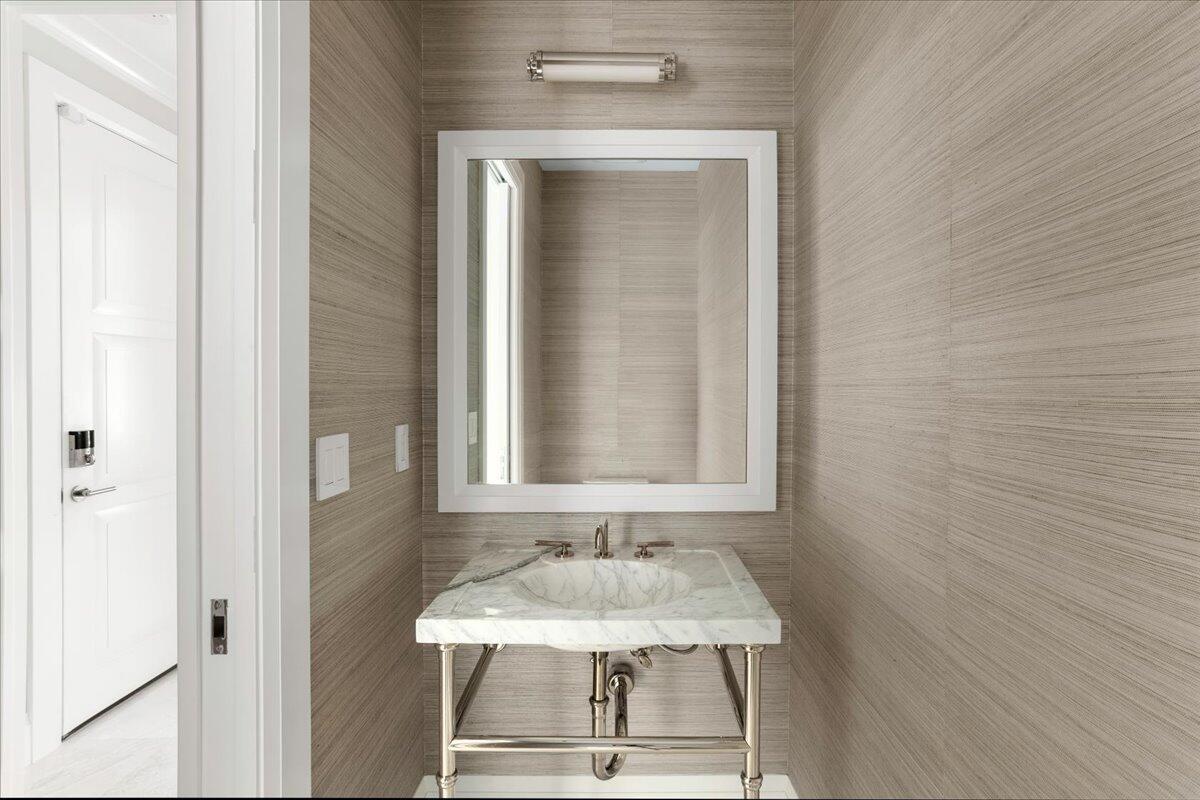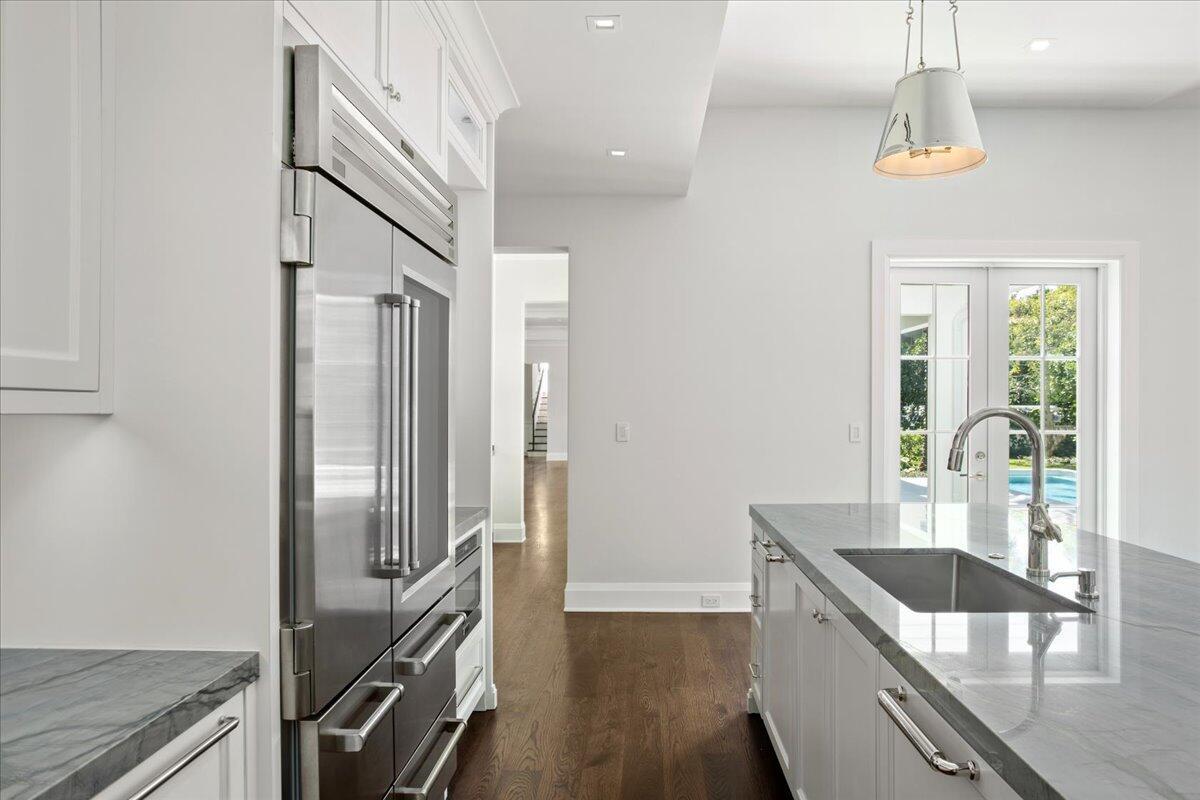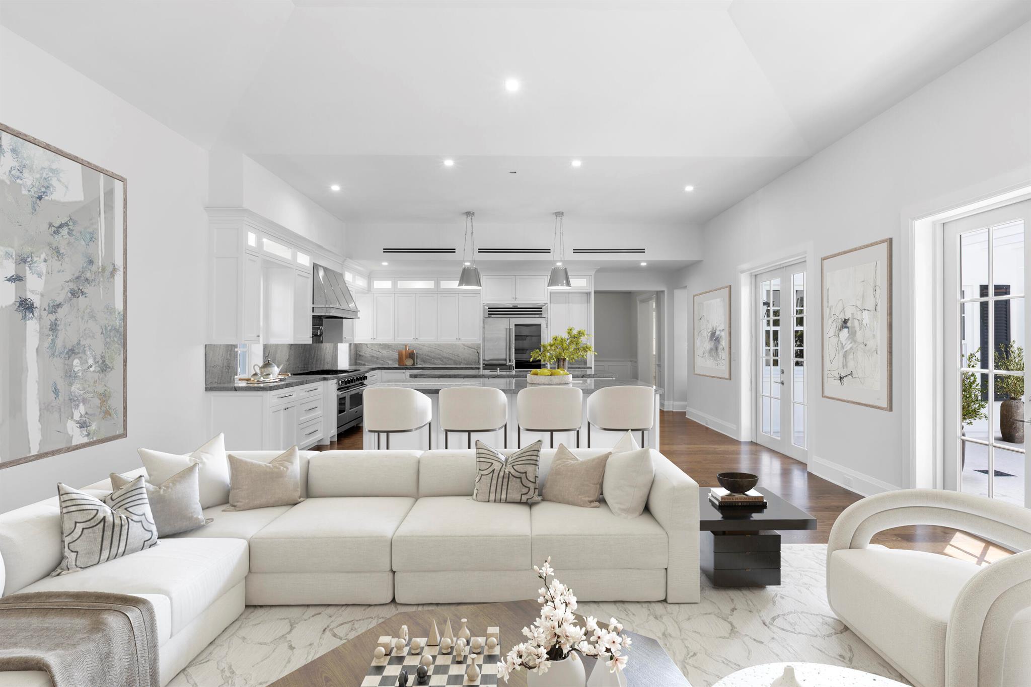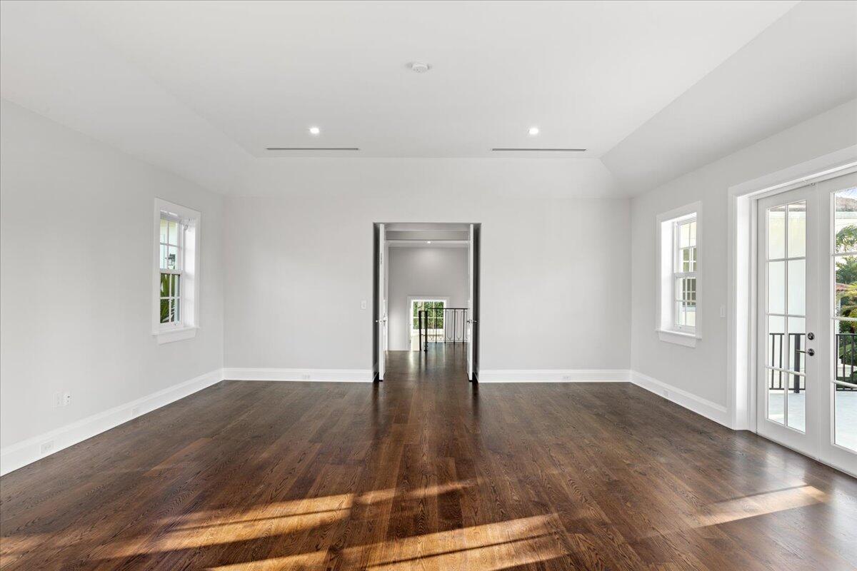 Just completed on an oversized lot, this five bedroom, 6.1 marble bath estate has ultra-high ceilings and spacious rooms throughout. A stately entry foyer, separate bar with 2 refrigerators, hardwood floors and recessed lighting throughout. Bright and light, every room has at least two walls of windows/doors. The primary suite has two luxurious bathrooms, large walk-in closets, and a generous private terrace. The kitchen has quality cabinetry and appliances and expands onto a spacious family room. The east side of the property has a wonderfully sized garden area, and the west aide has an outdoor loggia that is adjacent to the oversized pool/spa. Additionally, there is an elevator, storage, 2 laundry rooms, air-conditioned two car garage,