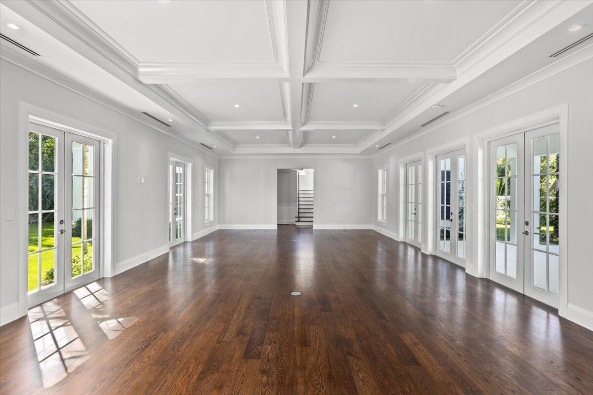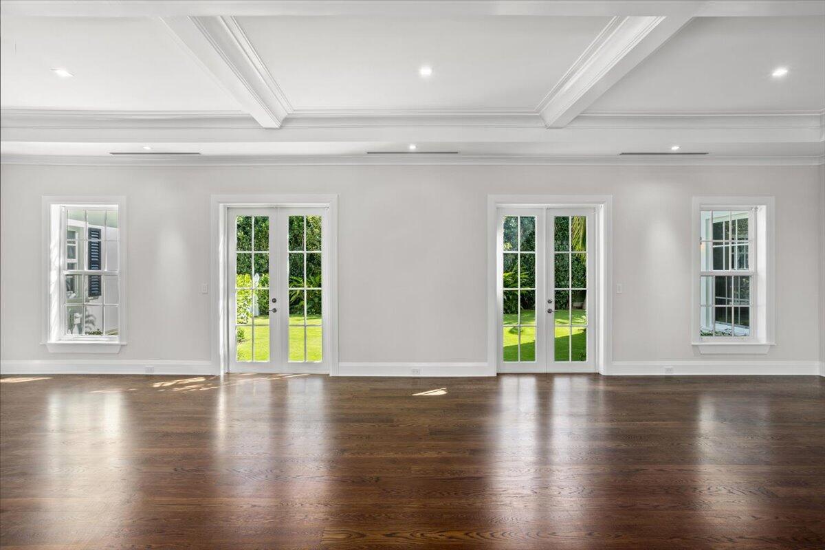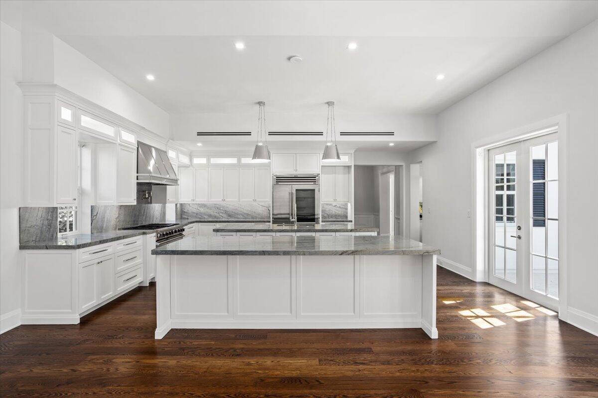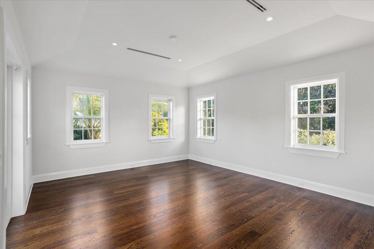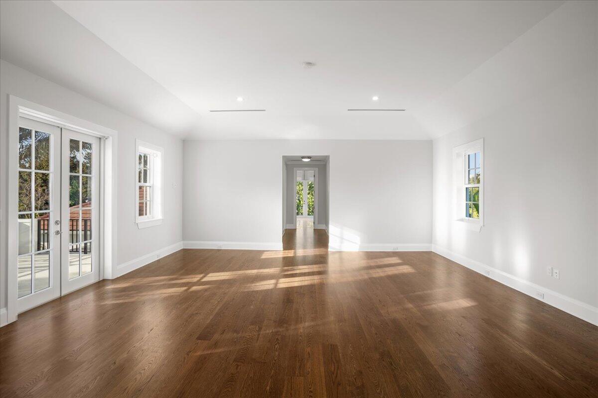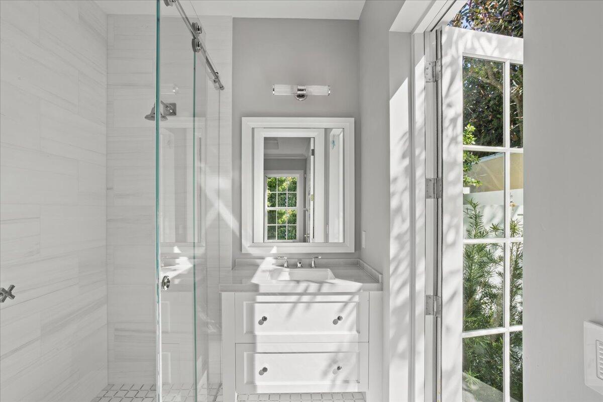 Just completed on an oversized lot, this five bedroom, 6.1 marble bath estate has ultra-high ceilings and spacious rooms throughout. A stately entry foyer, separate bar with 2 refrigerators, hardwood floors and recessed lighting throughout. Bright and light, every room has at least two walls of windows/doors. The primary suite has two luxurious bathrooms, large walk-in closets, and a generous private terrace. The kitchen has quality cabinetry and appliances and expands onto a spacious family room. The east side of the property has a wonderfully sized garden area, and the west aide has an outdoor loggia that is adjacent to the oversized pool/spa. Additionally, there is an elevator, storage, 2 laundry rooms, air-conditioned two car garage,