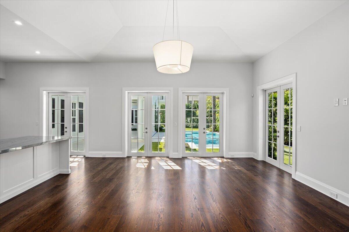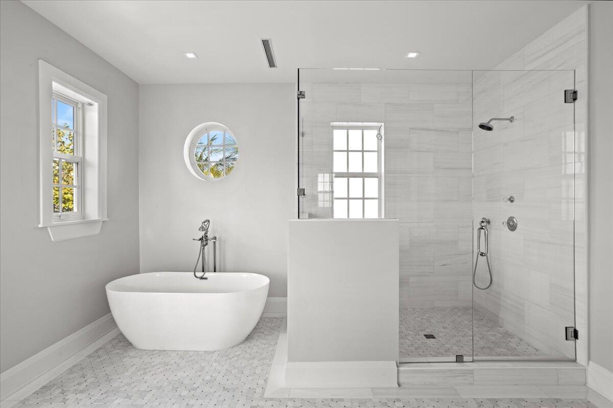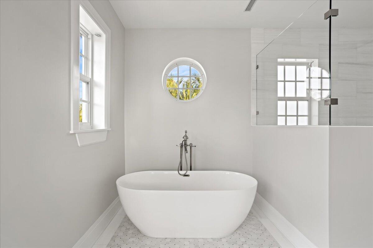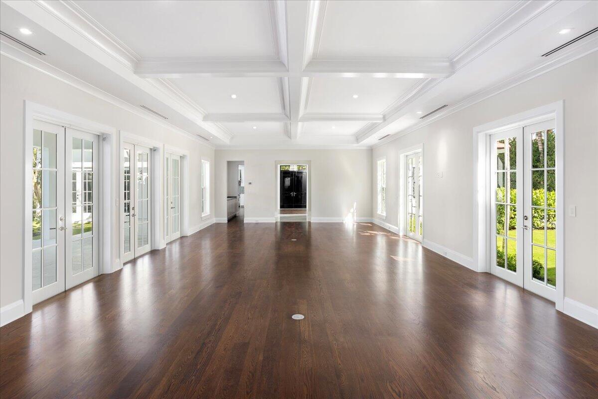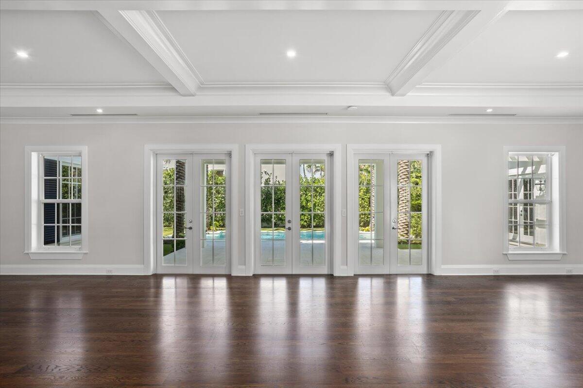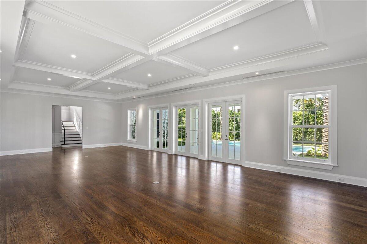 Just completed on an oversized lot, this five bedroom, 6.1 marble bath estate has ultra-high ceilings and spacious rooms throughout. A stately entry foyer, separate bar with 2 refrigerators, hardwood floors and recessed lighting throughout. Bright and light, every room has at least two walls of windows/doors. The primary suite has two luxurious bathrooms, large walk-in closets, and a generous private terrace. The kitchen has quality cabinetry and appliances and expands onto a spacious family room. The east side of the property has a wonderfully sized garden area, and the west aide has an outdoor loggia that is adjacent to the oversized pool/spa. Additionally, there is an elevator, storage, 2 laundry rooms, air-conditioned two car garage,