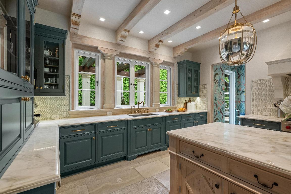 Stunning ocean block, custom 4-bedroom, 4.2-bath home spans 6,030 sq. ft. and showcases timeless elegance with modern luxury. Designed by Thomas Kirchhoff, the residence features a first-floor master suite, study, and a chef's kitchen with a center island opening to a spacious family room and screened loggia overlooking a lush yard, pool/spa, and cabana bath. Upstairs offers three en-suite bedrooms, a sitting room, a wet bar, laundry, and a large terrace--perfect for guests. High end finishes include extensive pecky cypress woodwork, custom millwork, 10-foot ceilings, a wine wall with a 450-bottle fridge, two gas fireplaces, multiple fountains, and a two-car garage. Deeded beach access and a full house generator complete this exceptional offering.