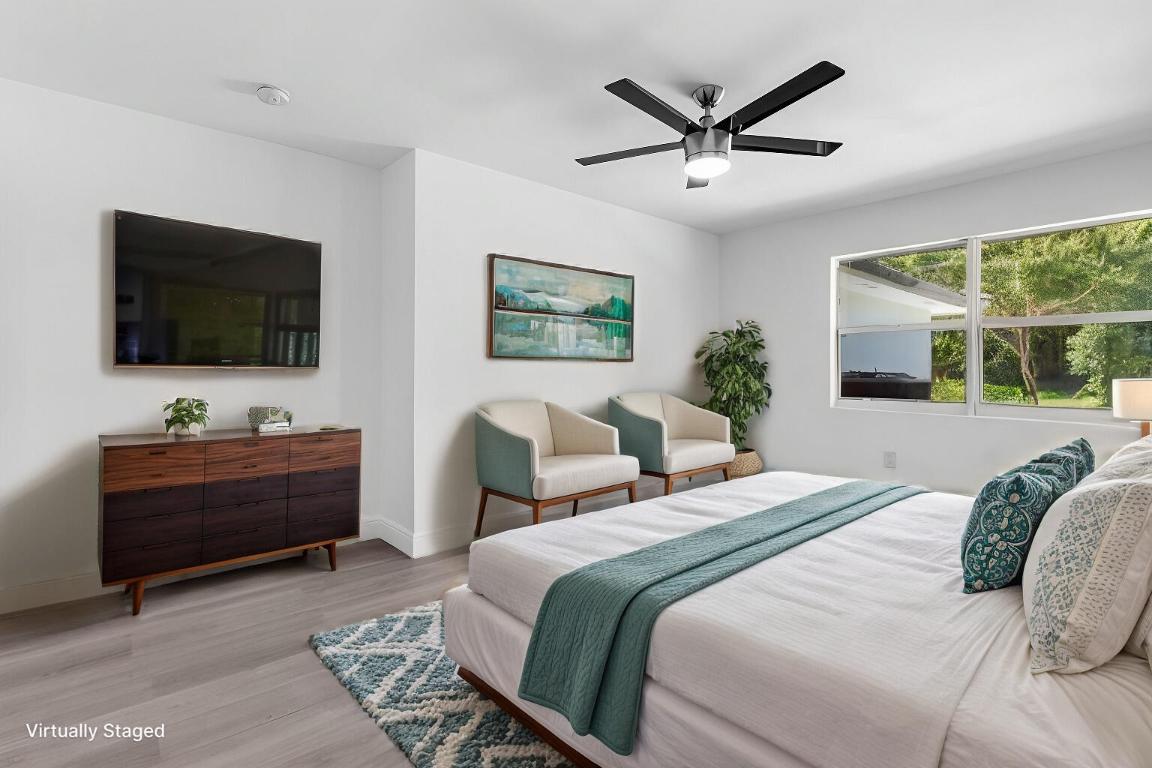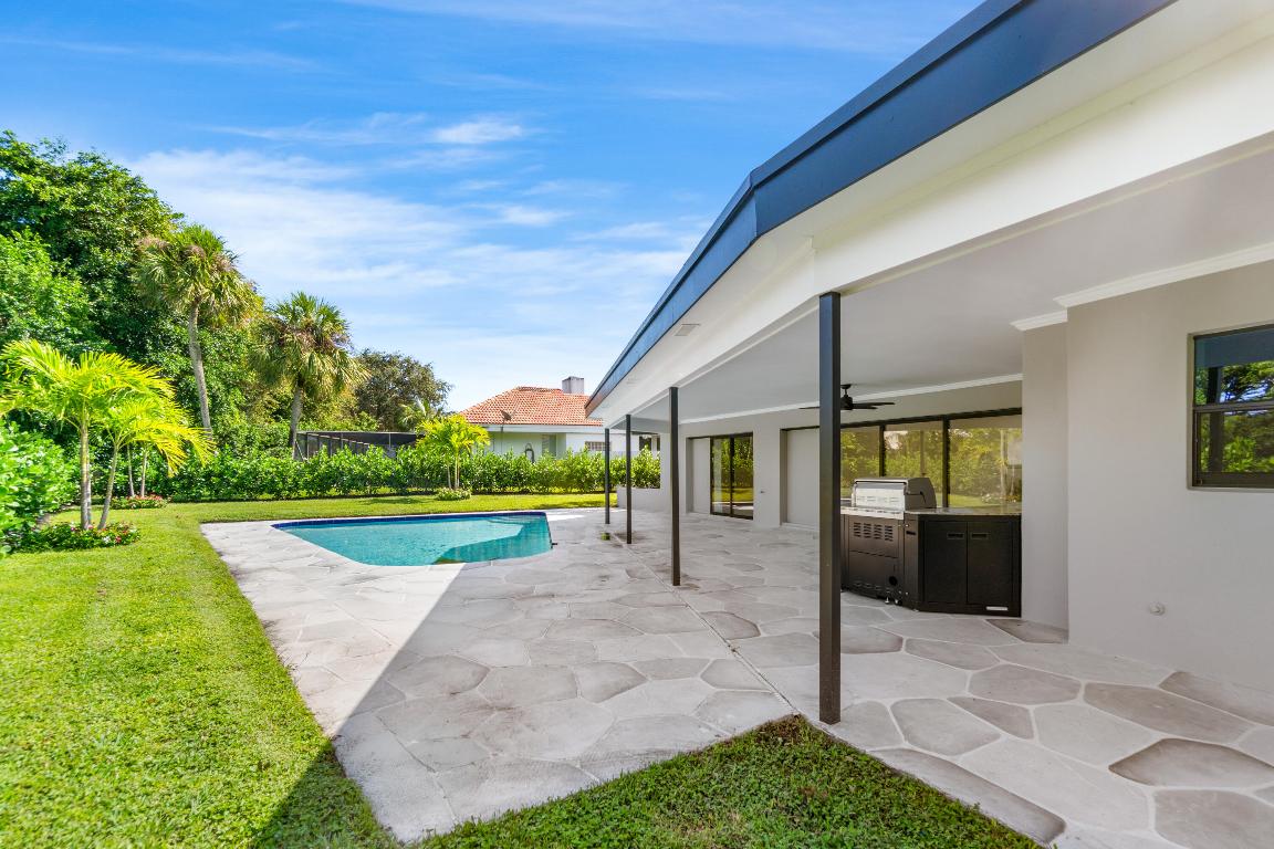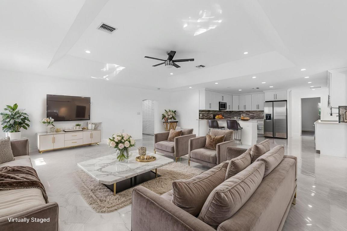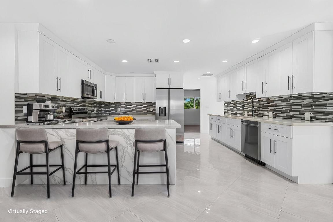 Nestled in the highly sought-after, guard-gated community of Presidential Estates, this updated 4-bedroom, 3-bathroom home epitomizes elegance and comfort. Step into a bright and spacious eat-in kitchen, featuring custom cabinetry, sleek quartz countertops, and top-of-the-line stainless-steel appliances--perfect for culinary creations and family gatherings. Your private outdoor oasis awaits--a sparkling pool, expansive fenced backyard, and fully equipped outdoor kitchen create the perfect setting for entertaining or simply relaxing in style.