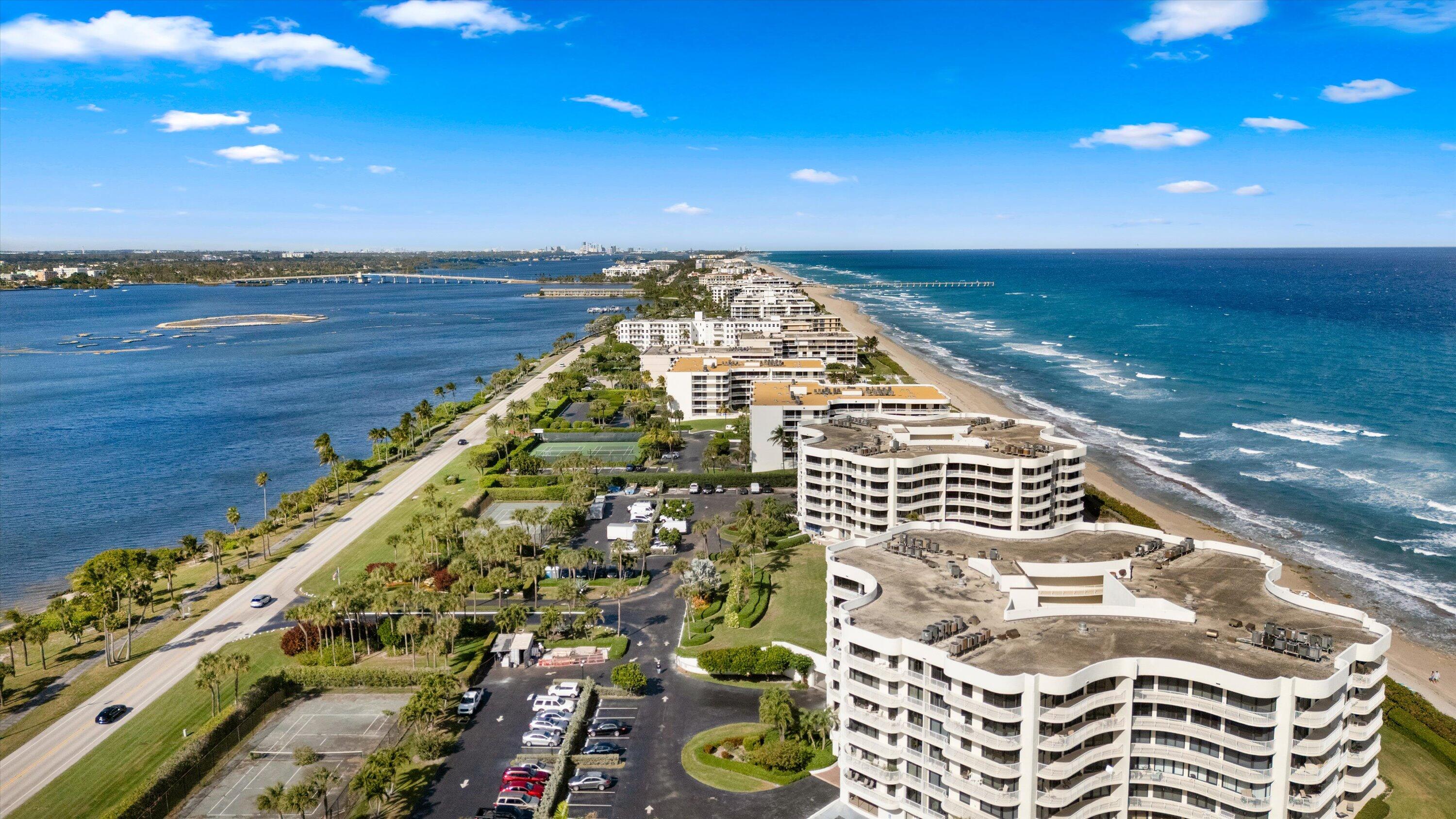 Enjoy stunning sunrises from this stylishly renovated 1,740 square foot, 2 bedroom, 2 bath residence with sweeping ocean views and a SE exposure. Light and airy, this residence offers a comfortable coastal lifestyle. Relax on your private balcony overlooking the ocean and pool area. The building features direct ocean access and amenities including a resort-style pool, tennis courts, fitness center, and party room. The 3360 Building provides added convenience with a full-time doorperson and on-site manager. Located close to dining, shopping, golf courses, and just steps from the beach and AIA.