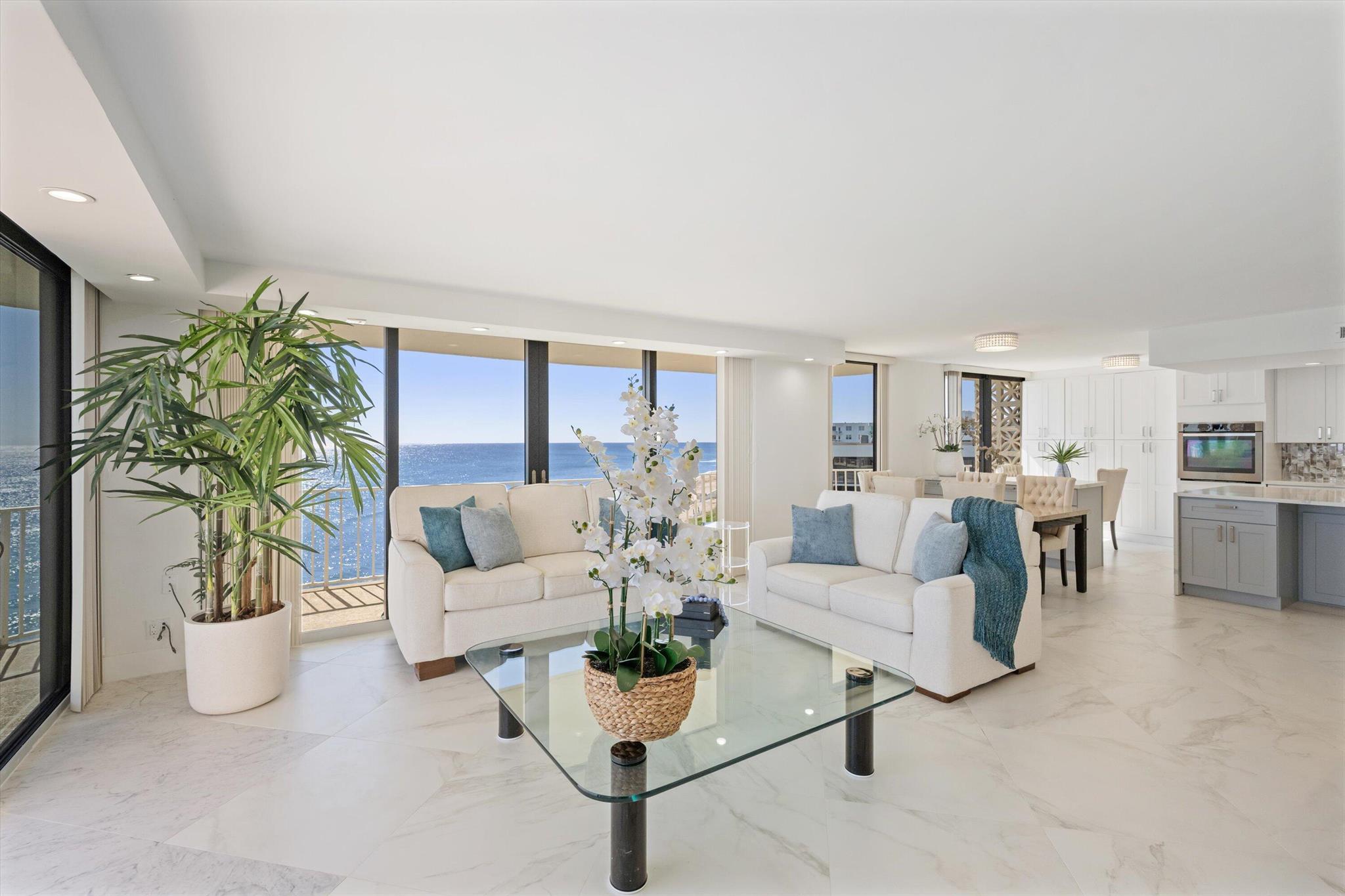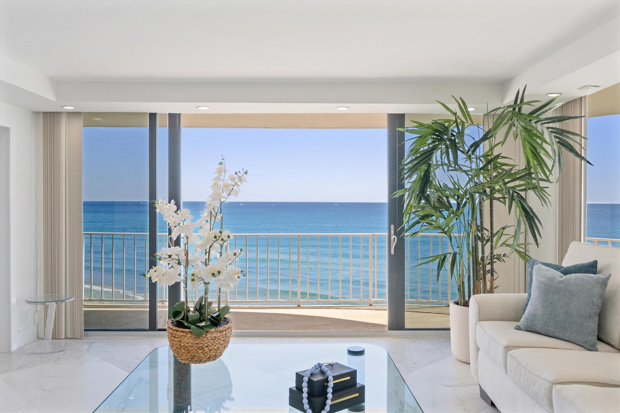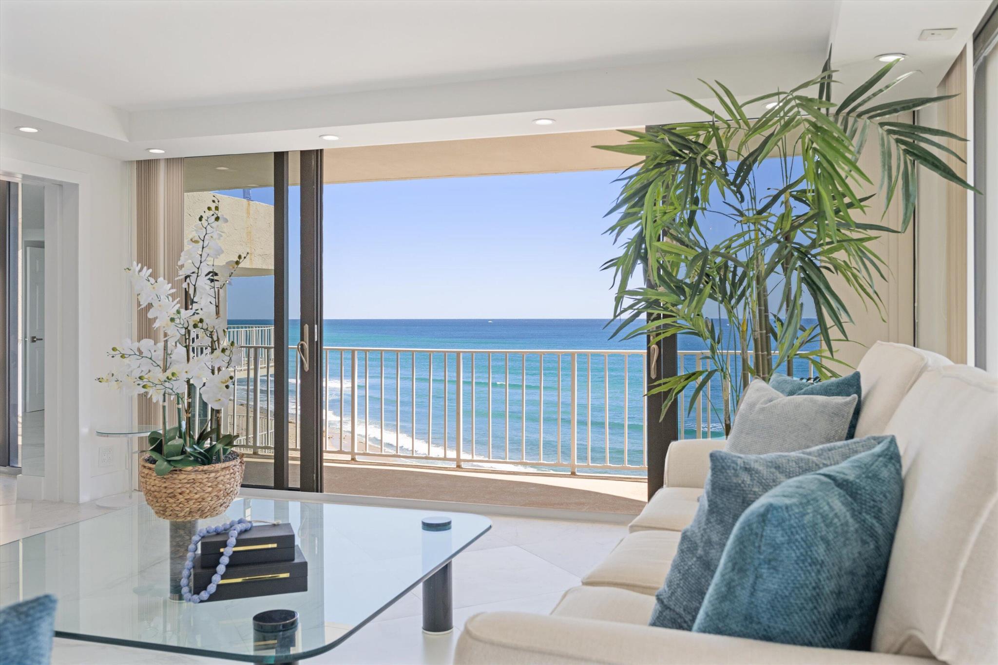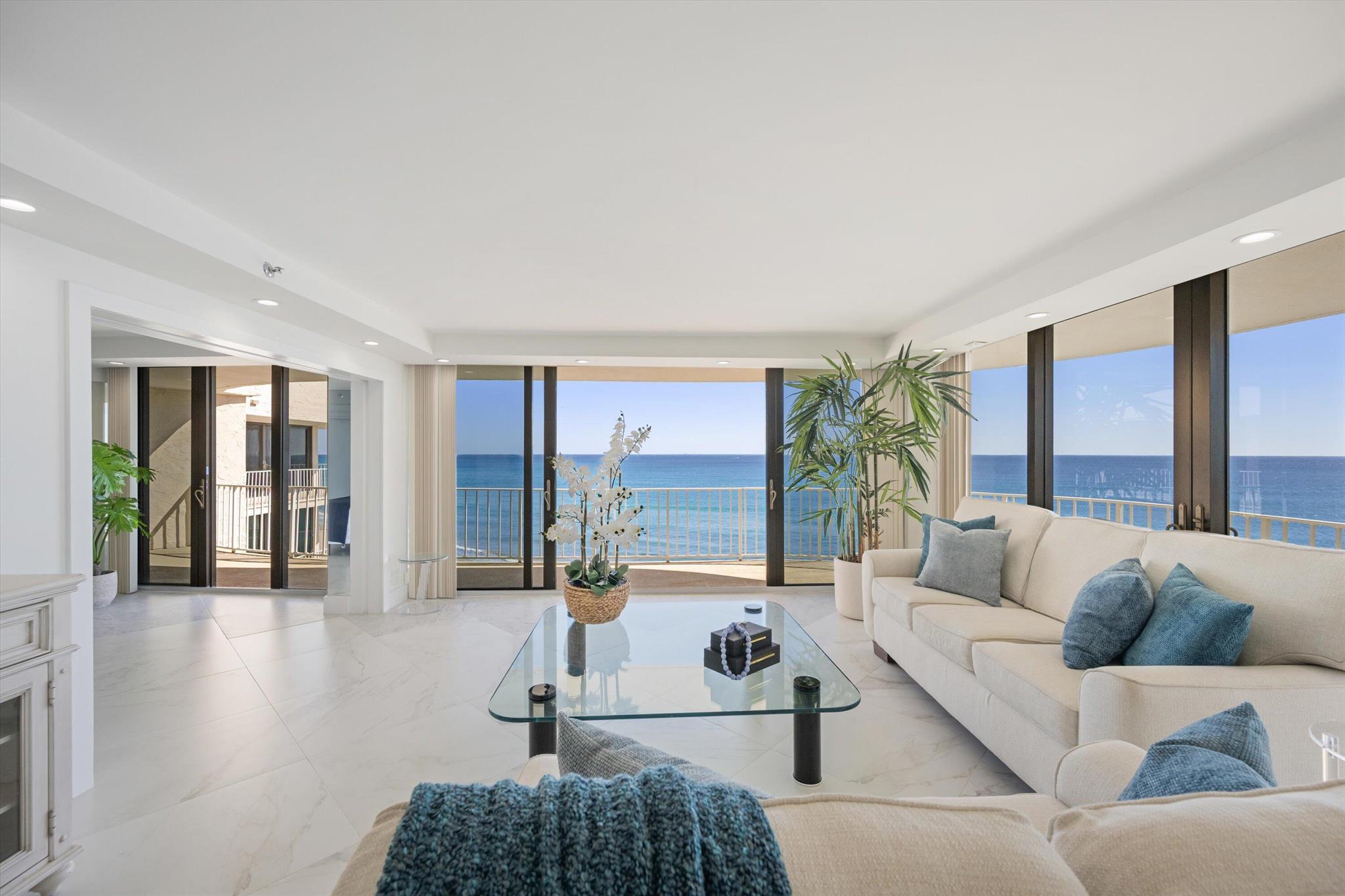 Step into a world of casual elegance where floor-to-ceiling glass welcomes you, showcasing breathtaking direct ocean views from every room of this stunning 2-bedroom, 2-bathroom.