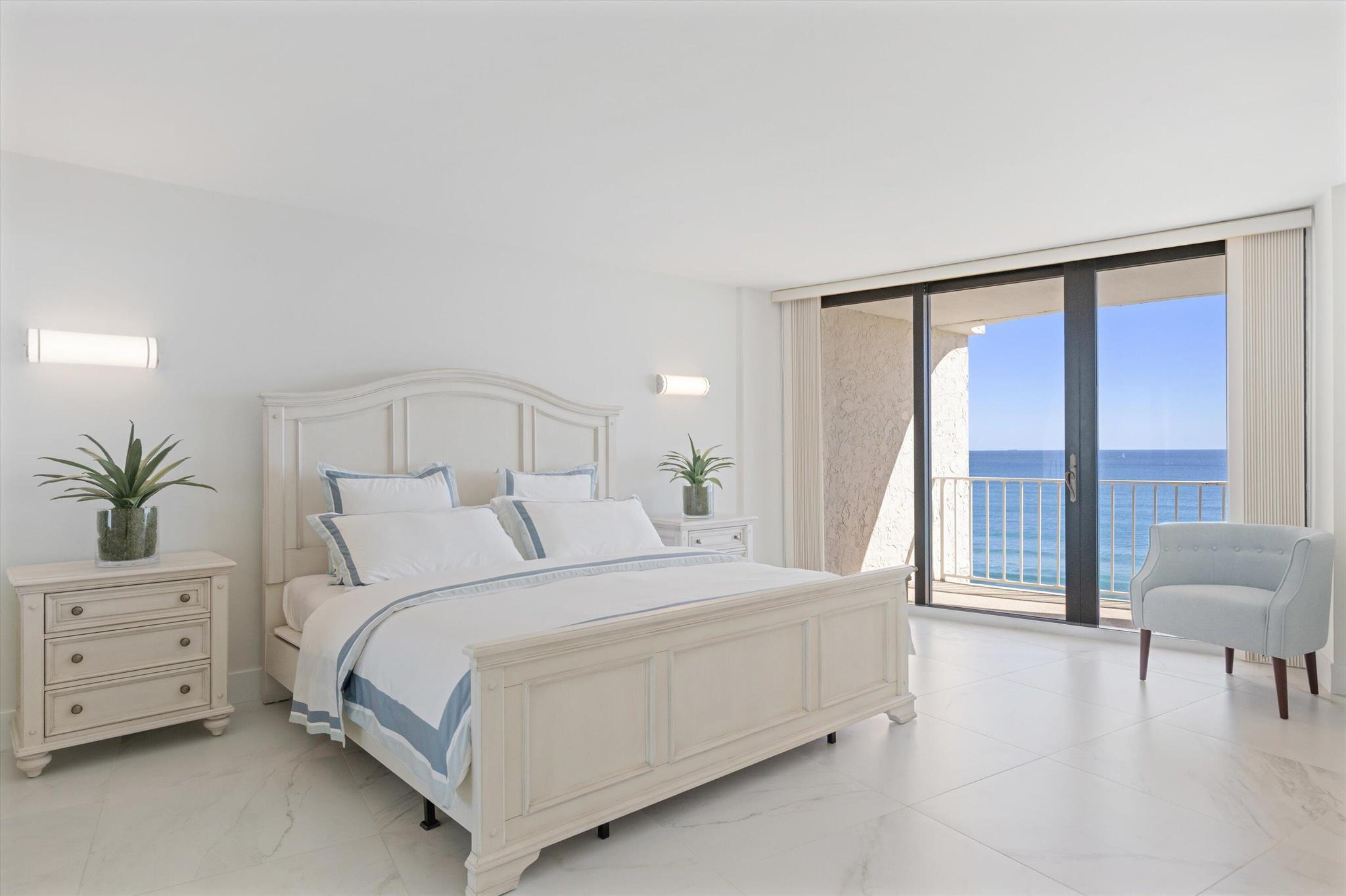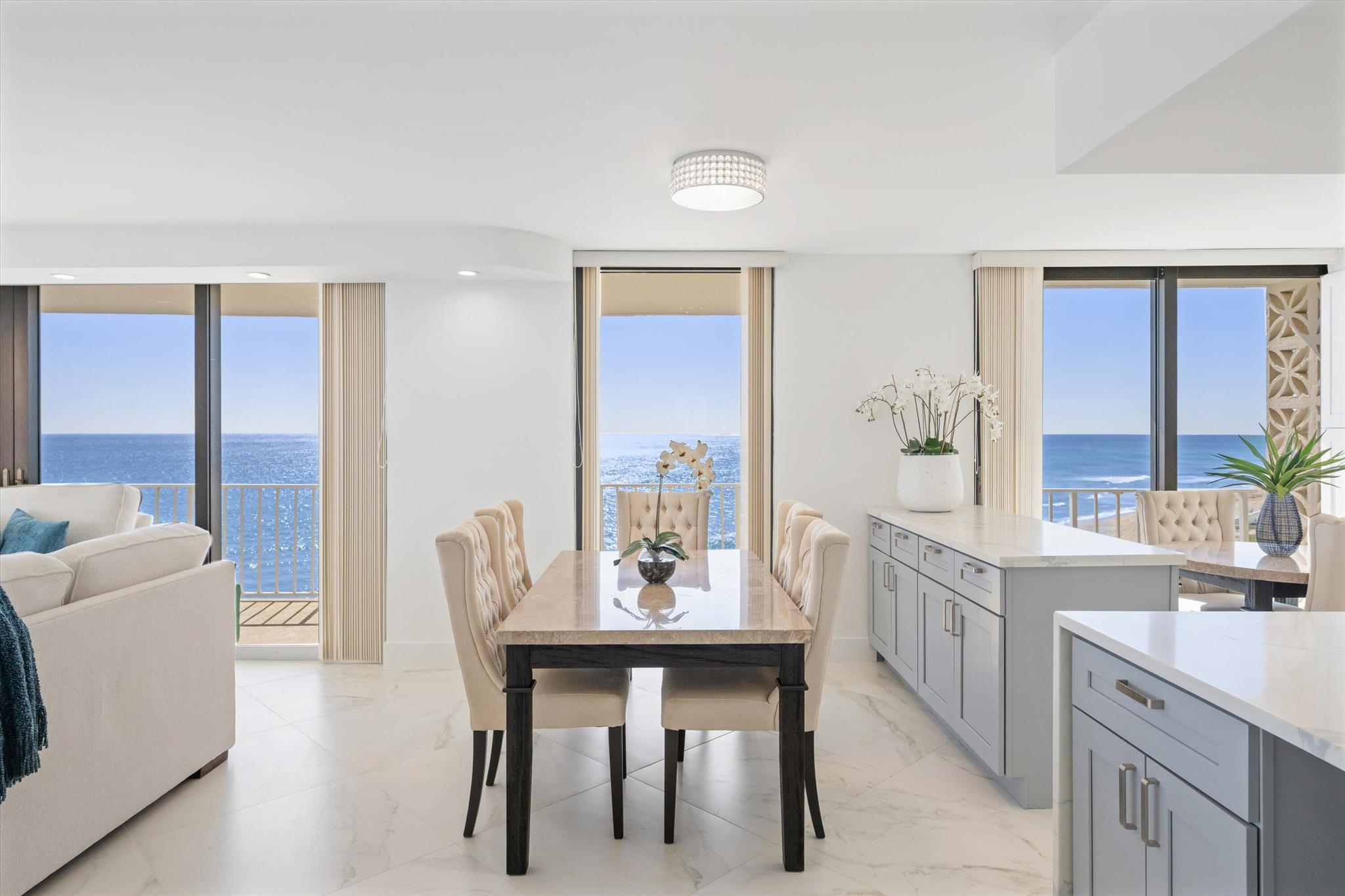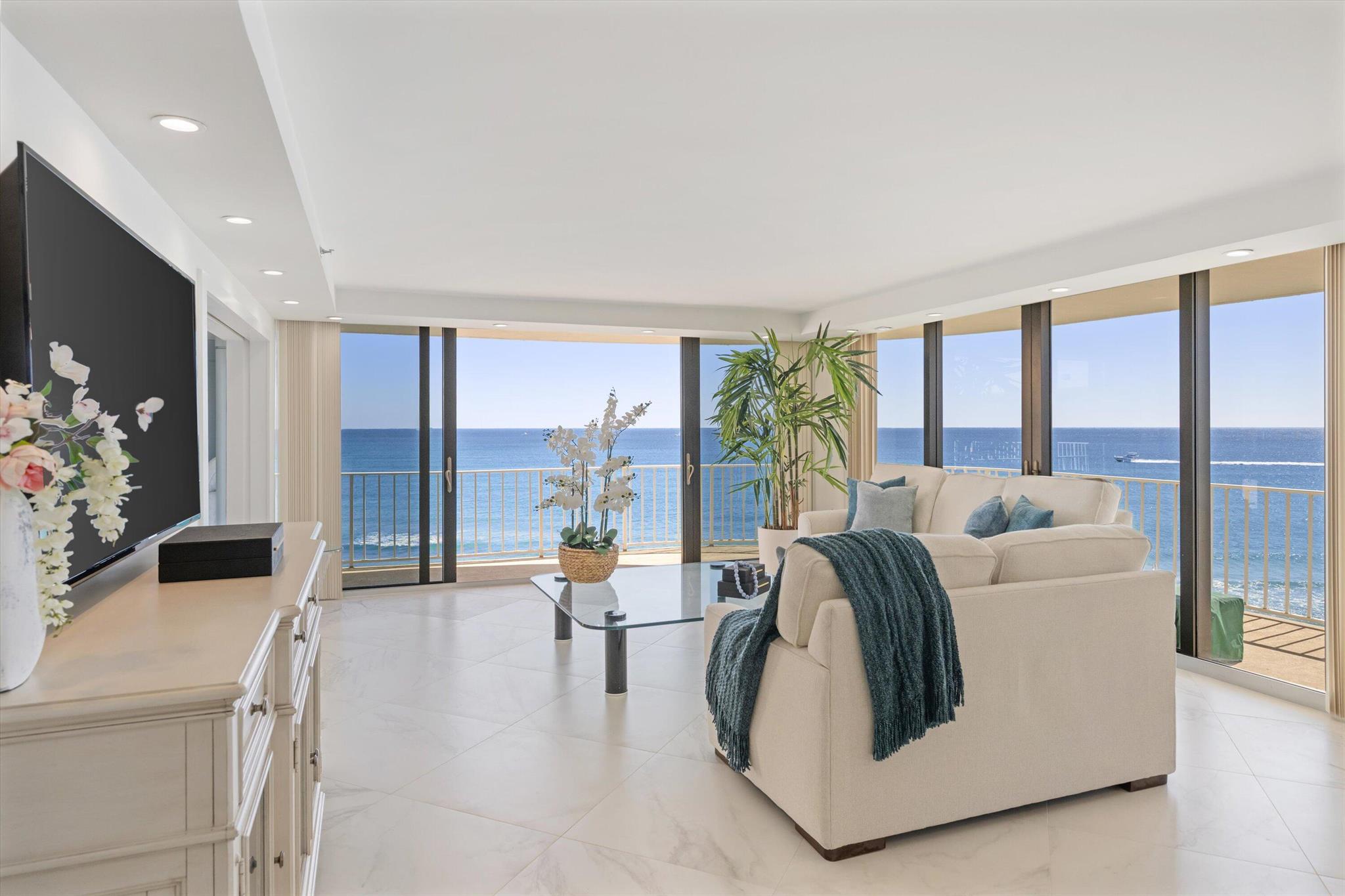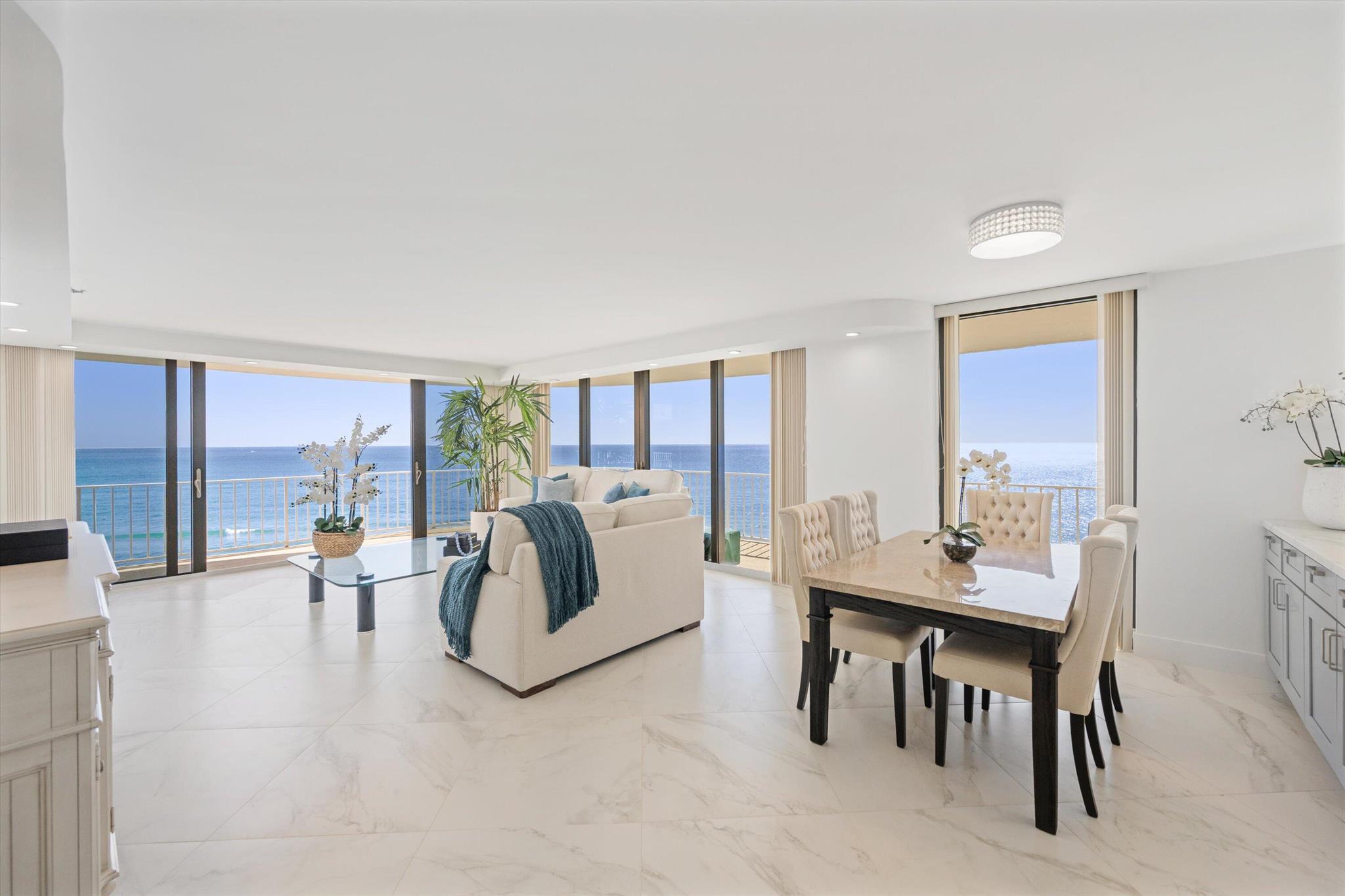 Step into a world of casual elegance where floor-to-ceiling glass welcomes you, showcasing breathtaking direct ocean views from every room of this stunning 2-bedroom, 2-bathroom.