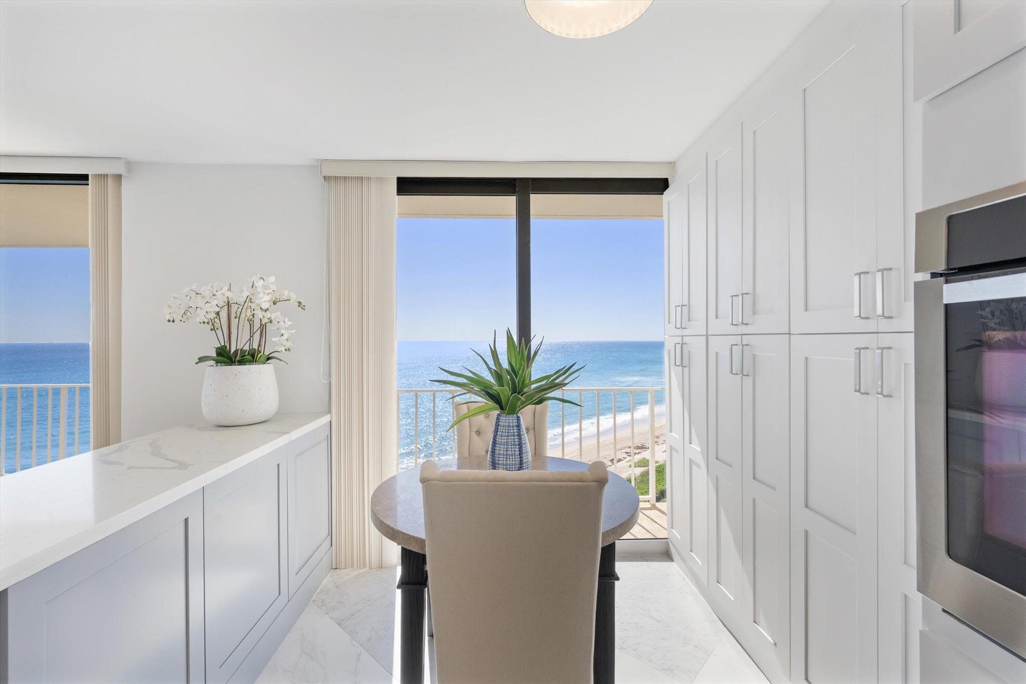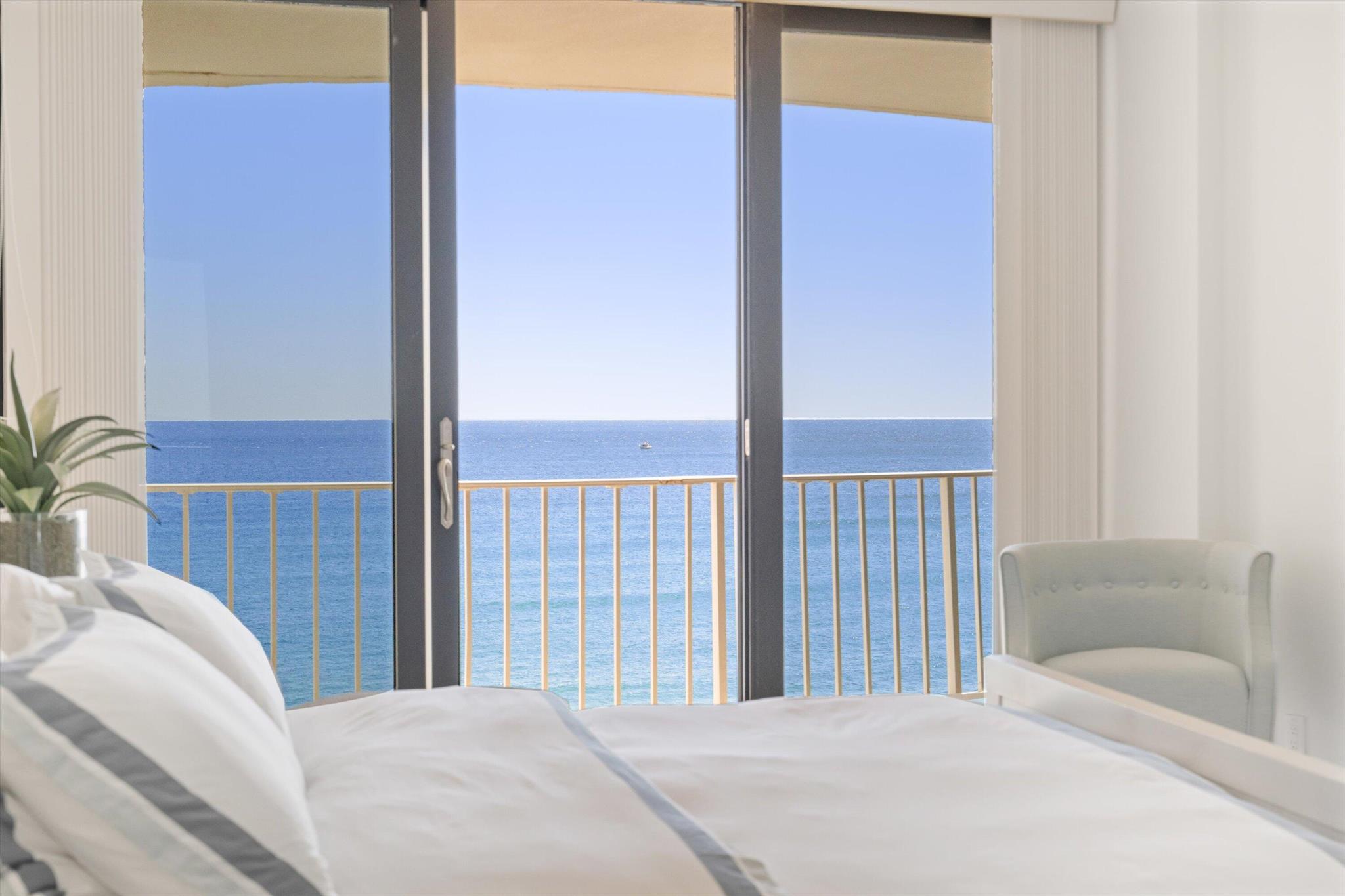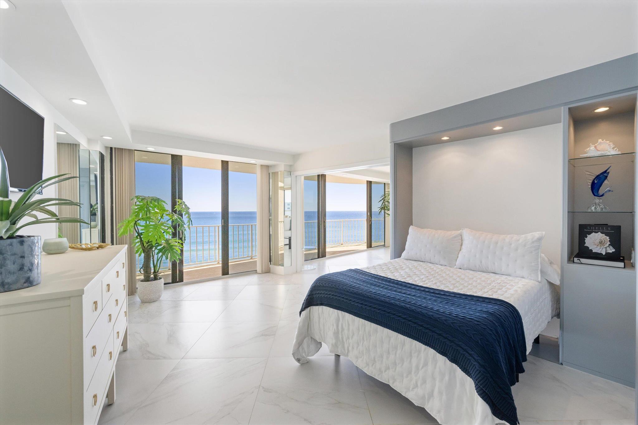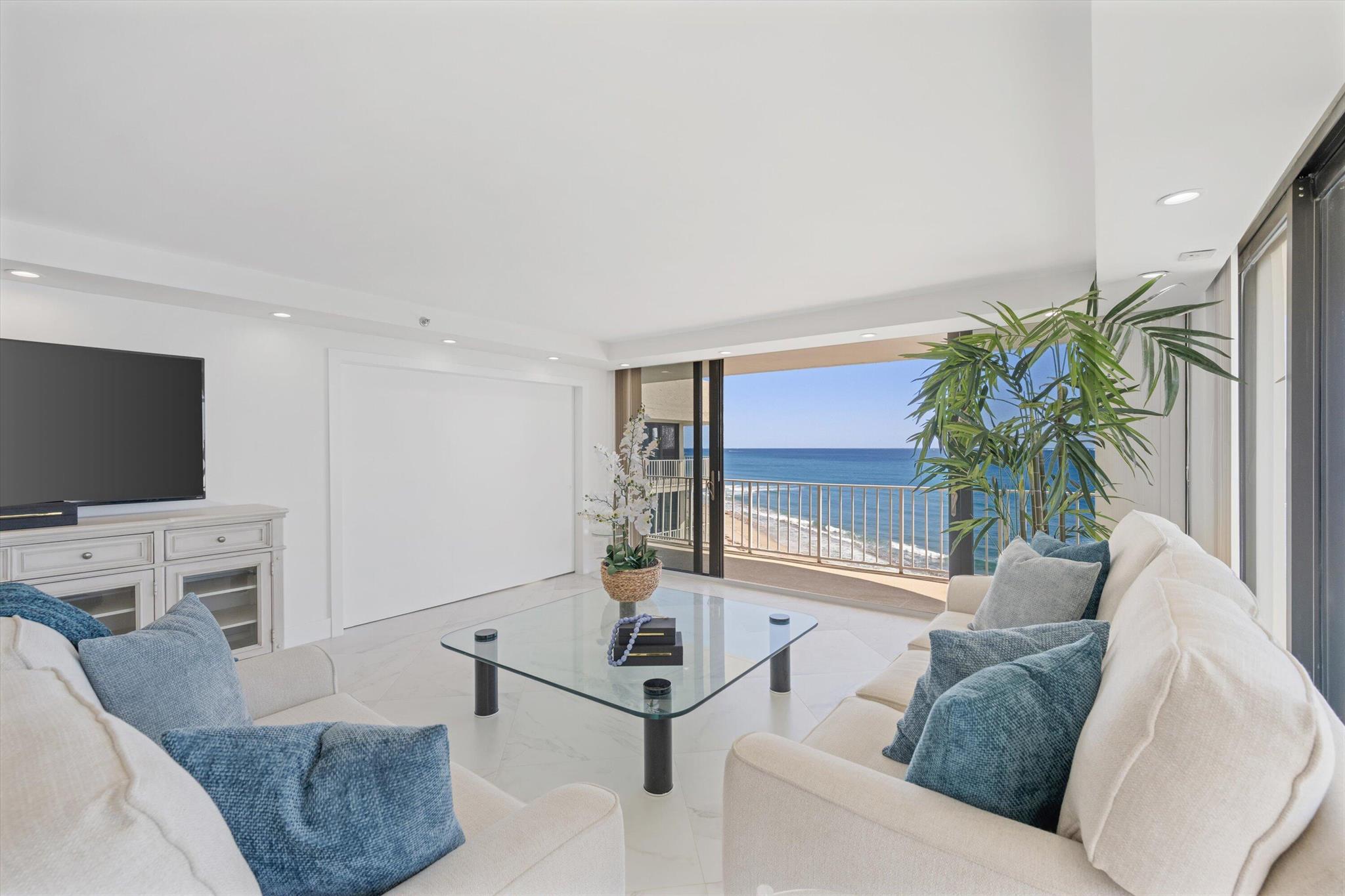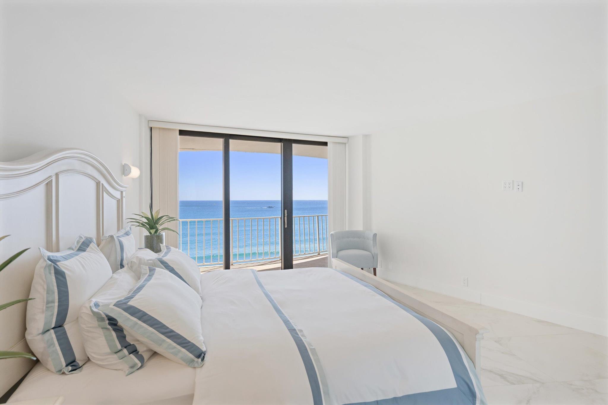 Step into a world of casual elegance where floor-to-ceiling glass welcomes you, showcasing breathtaking direct ocean views from every room of this stunning 2-bedroom, 2-bathroom.