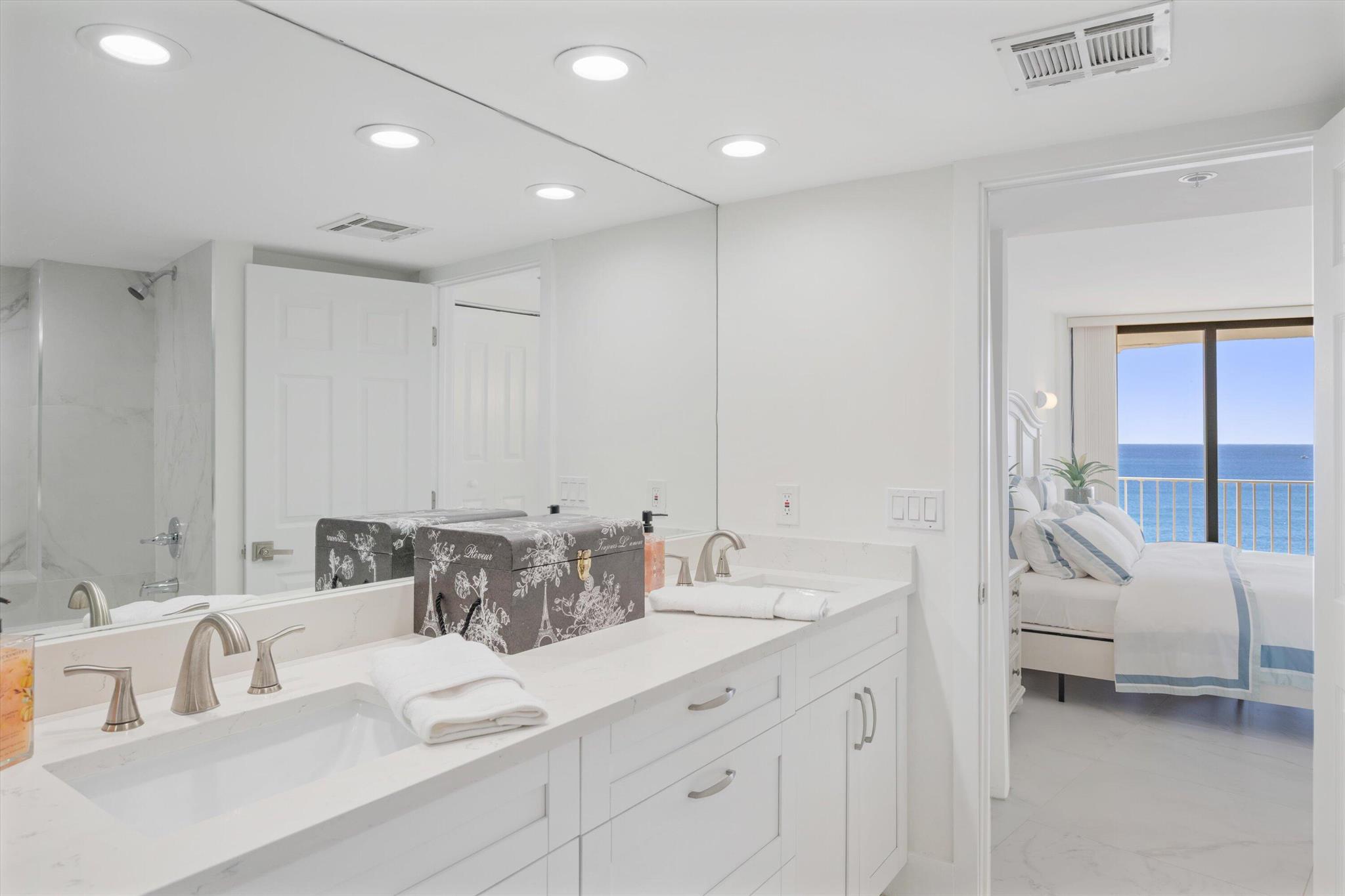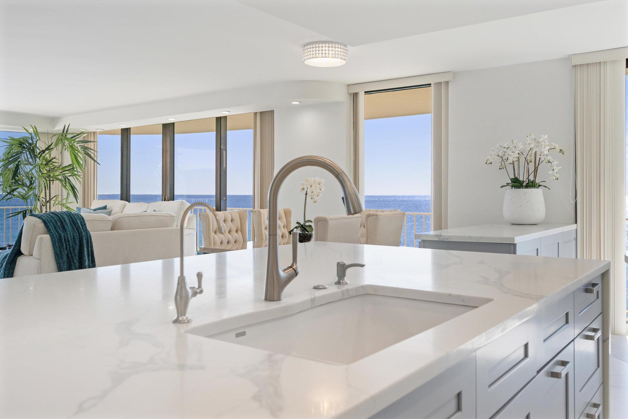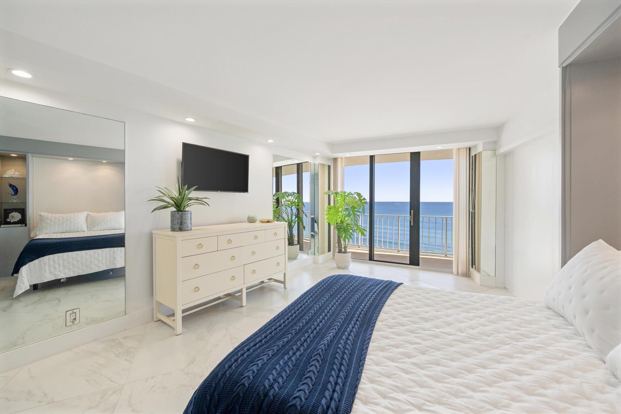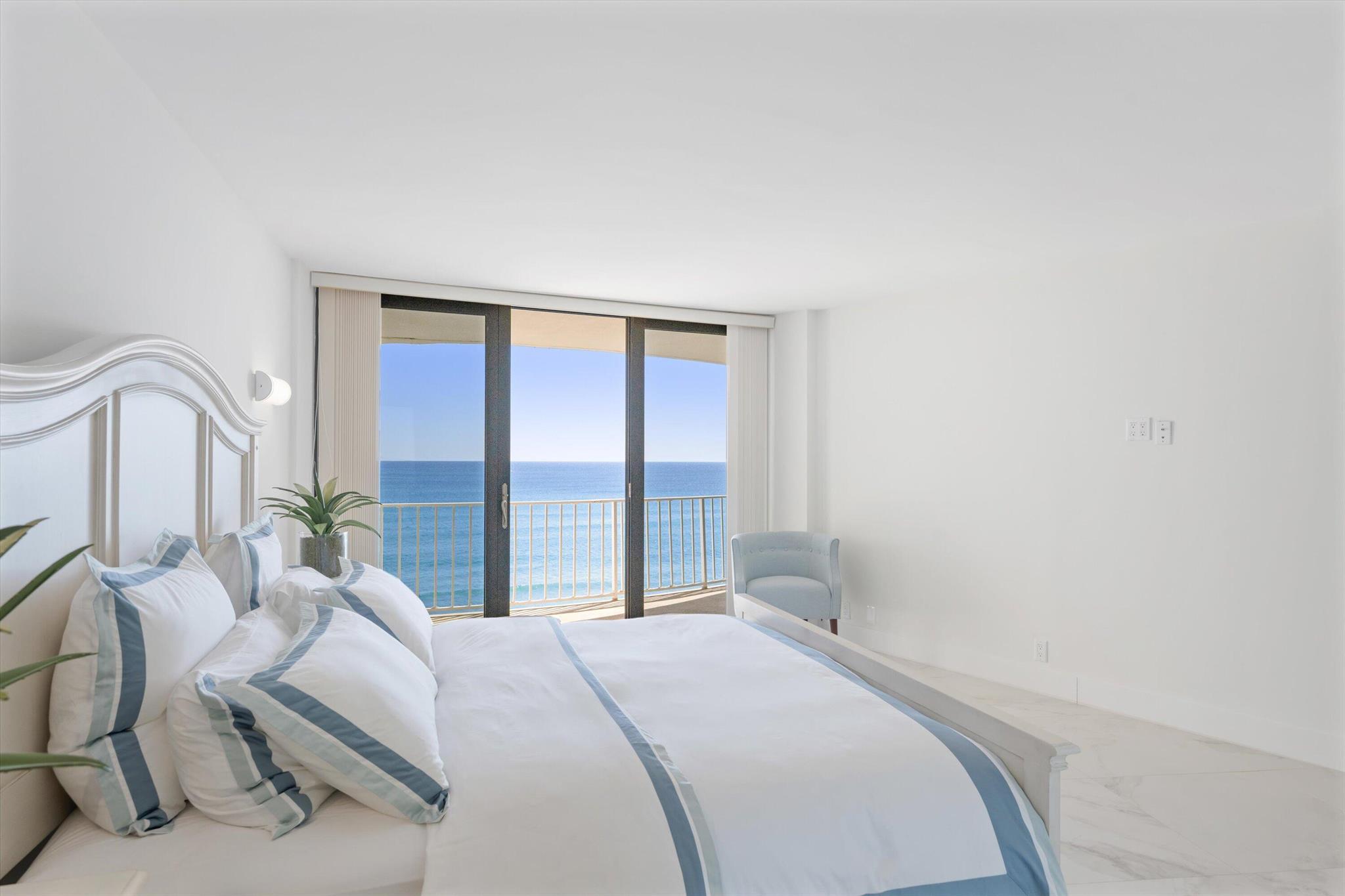 Step into a world of casual elegance where floor-to-ceiling glass welcomes you, showcasing breathtaking direct ocean views from every room of this stunning 2-bedroom, 2-bathroom.