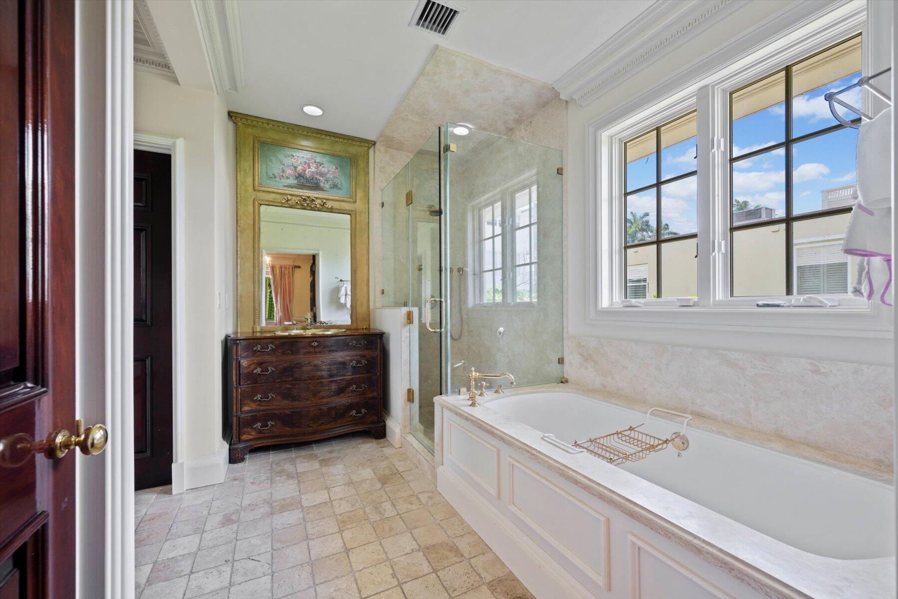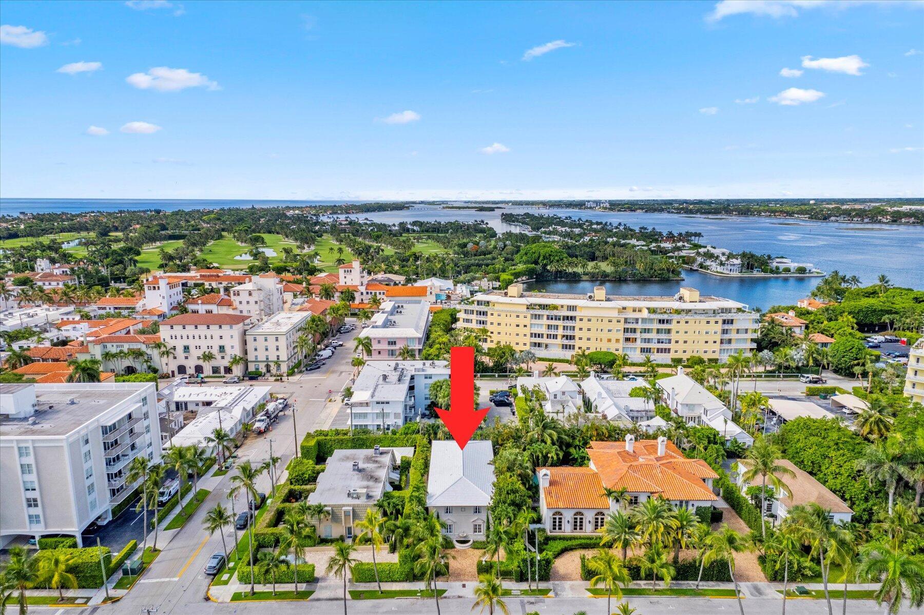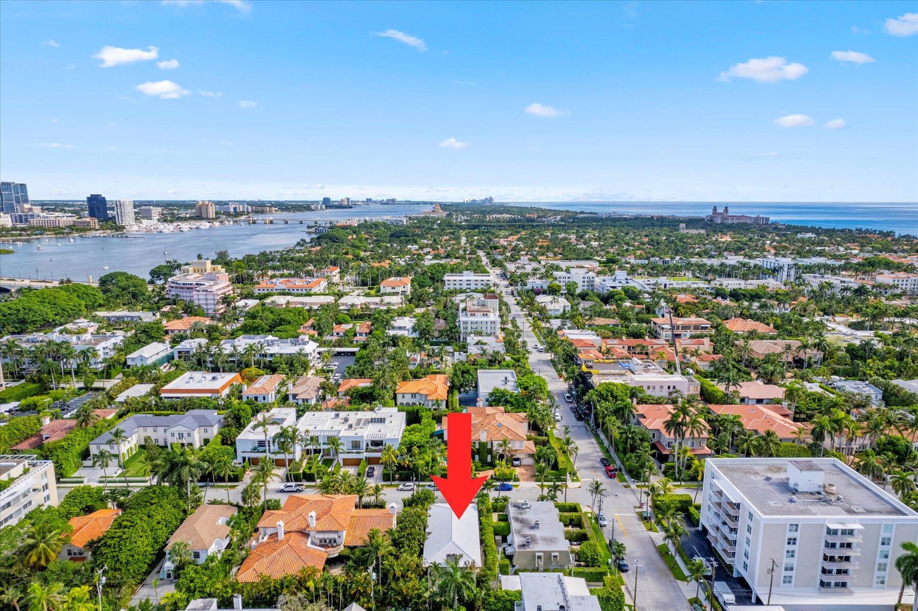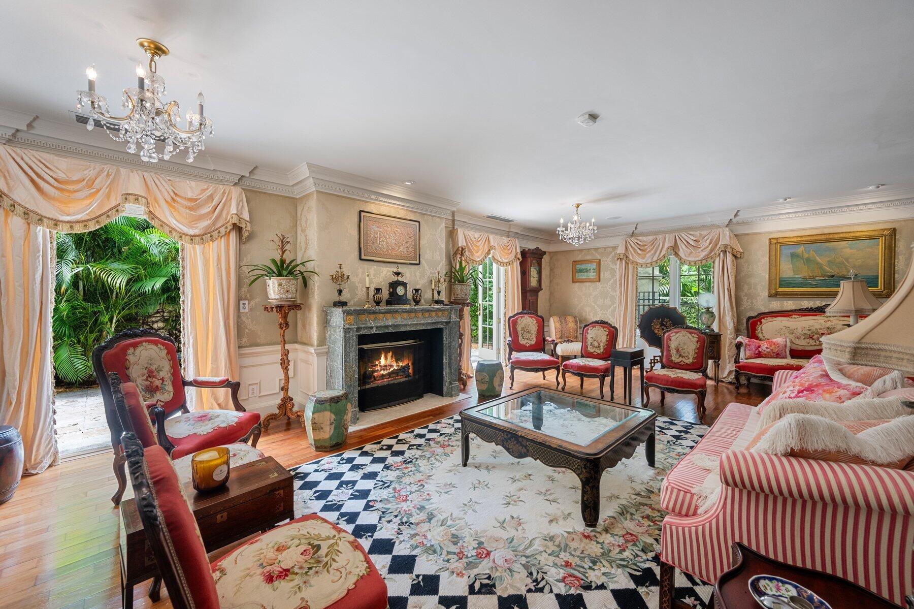 For the first time in over two decades, a remarkably private and meticulously detailed home near Worth Avenue and the town docks is available. Featuring a wonderful flowing floor plan, this unique property includes a spacious living room with views of a lush rear yard and a formal dining room with two walls of glass. Designed for ultimate privacy, it boasts beautiful moldings, a marble staircase, columns, and a marble fireplace imported from Paris. Additionally, it offers an upstairs living room and a second kitchen with an adjacent office that offers the flexibility to be converted into 4th bedroom suite.